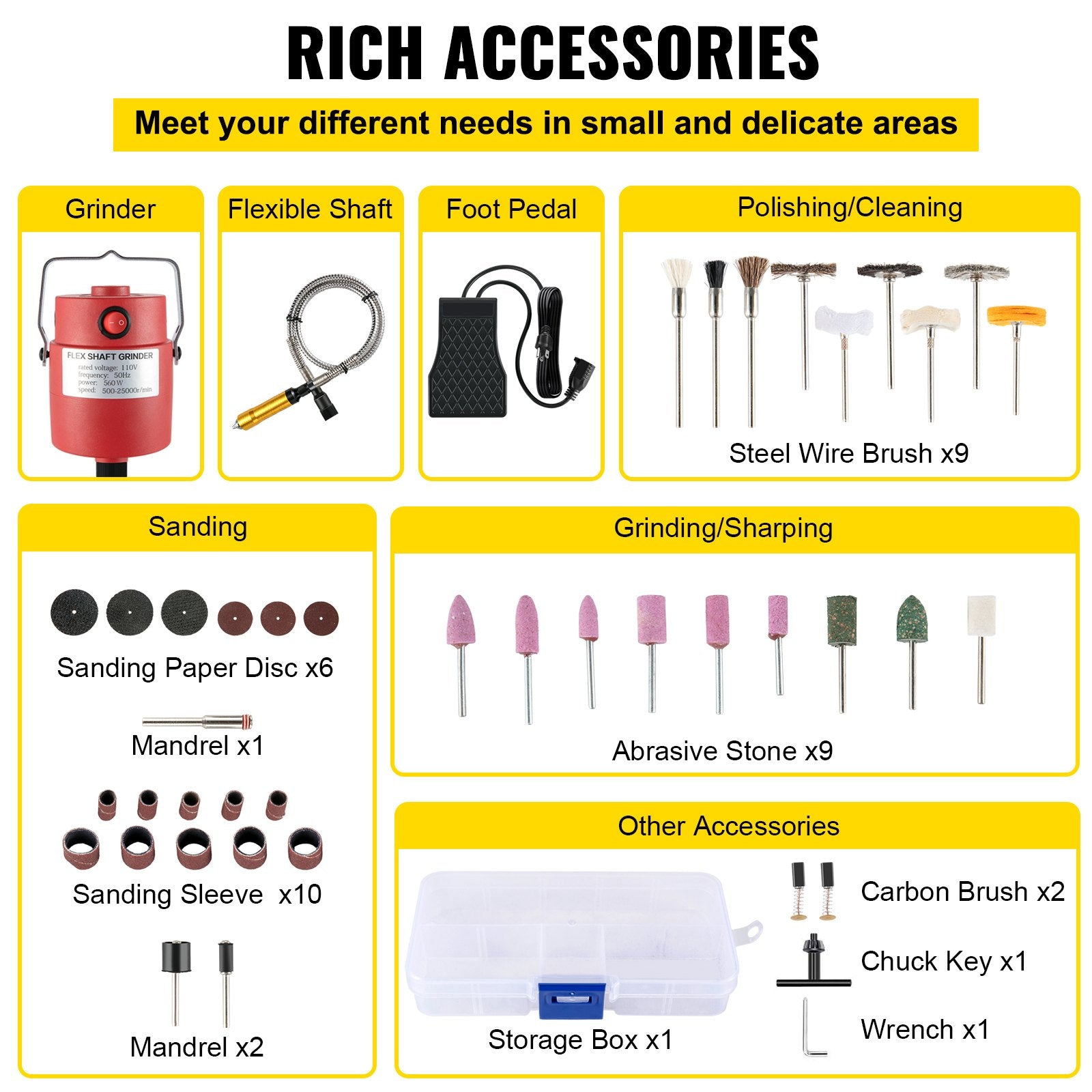 • Versatile Applications: Ideal for carving, buffing, drilling, and polishing in metal, wood, or plastic