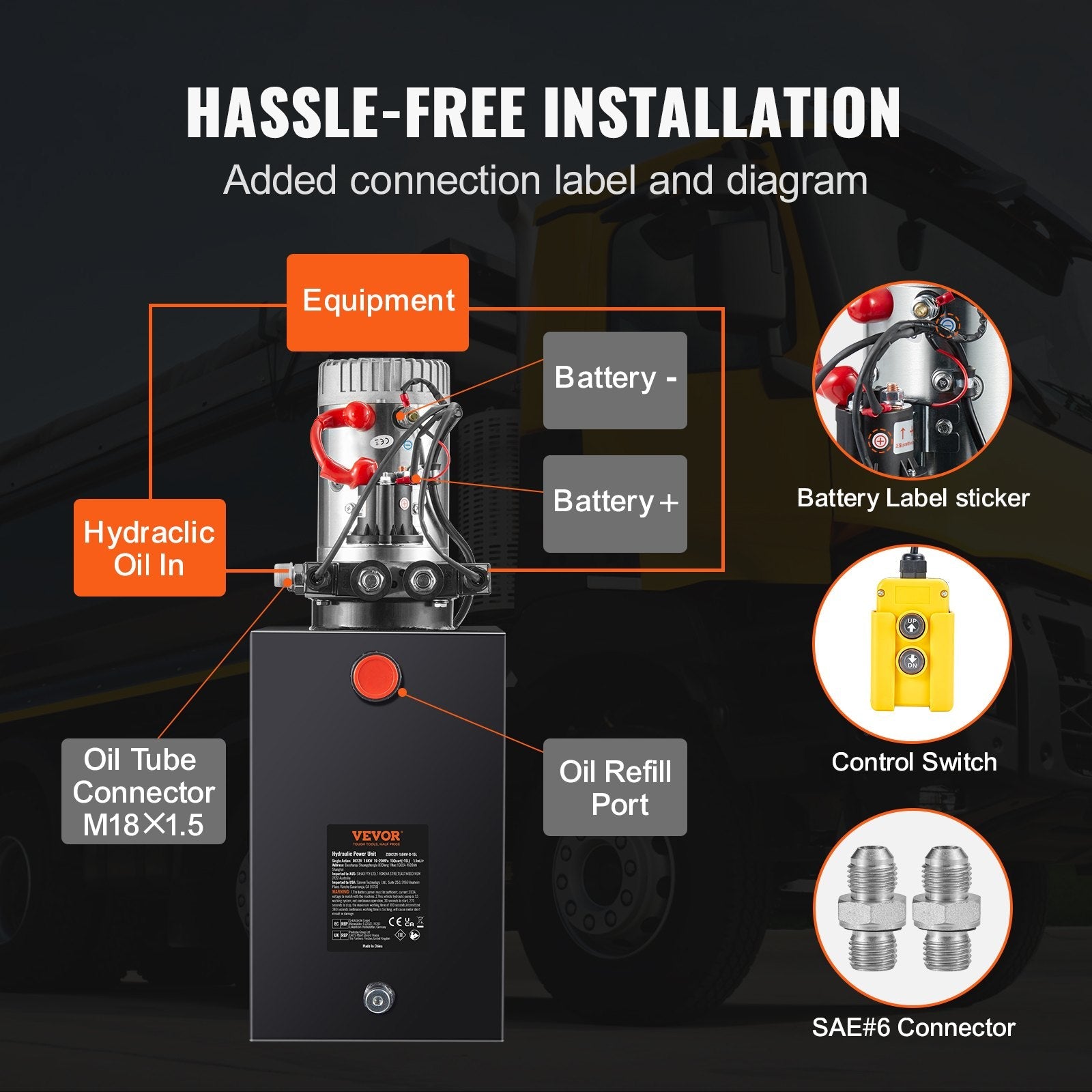 Power up your dump trailer or lifting system with the VEVOR 15 Quart Double Acting Hydraulic Pump. Built to handle heavy-duty lifting tasks with ease, this DC 12V hydraulic power unit features a 3200 PSI max pressure, durable steel construction, and a powerful 1.6 kW motor. Designed for efficiency and safety, it’s ideal for dump trailers, car lifts, and other mobile hydraulic systems requiring push-and-pull action.