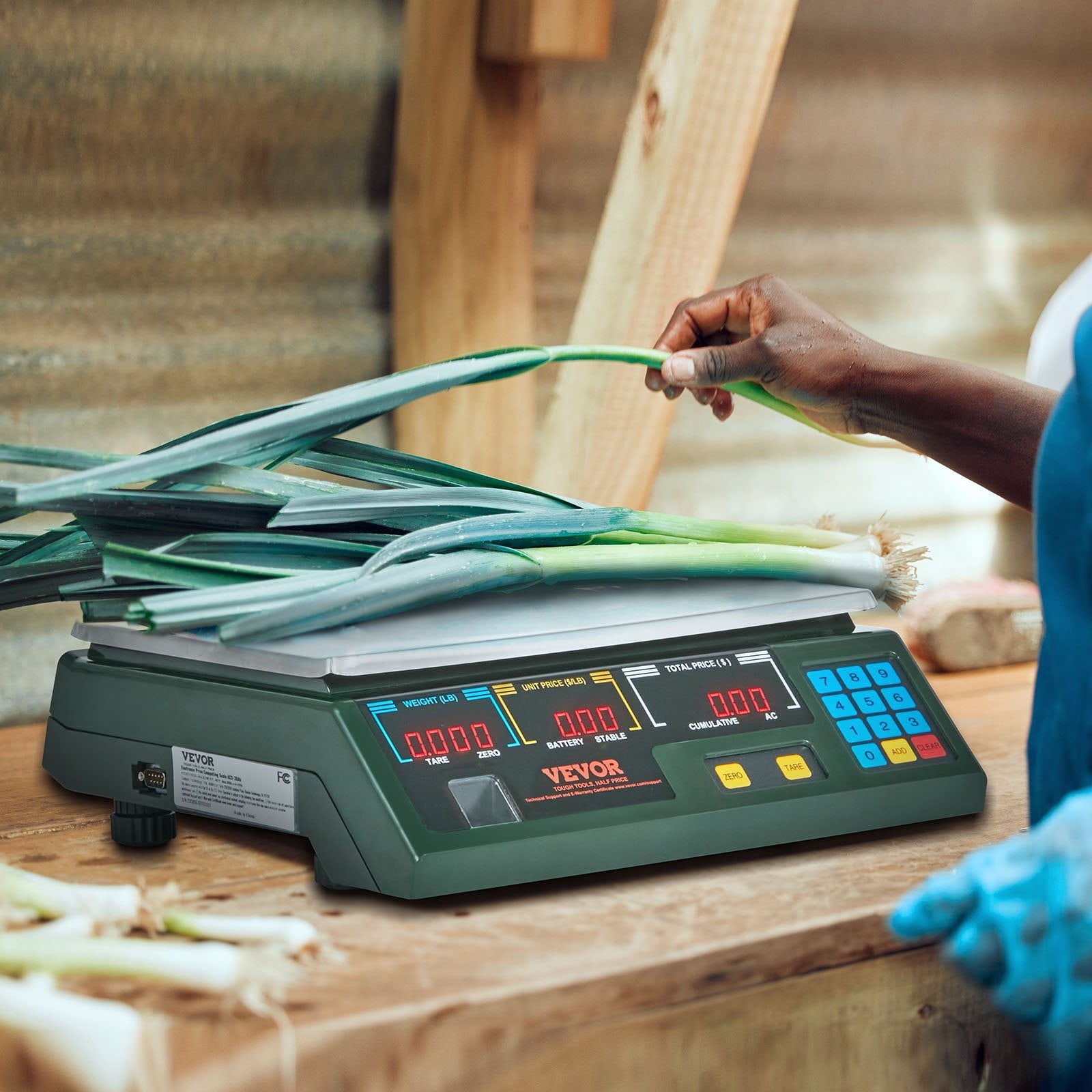 The VEVOR Electronic Price Computing Scale offers accurate and efficient weighing for retail outlets, kitchens, restaurants, and markets. Designed with dual LED screens for easy visibility, this digital deli scale provides precise weight and price calculations, making it ideal for weighing food, produce, meat, and fruit. Equipped with dual power modes for flexibility and built with durable materials, this scale ensures long-lasting performance in busy commercial environments.