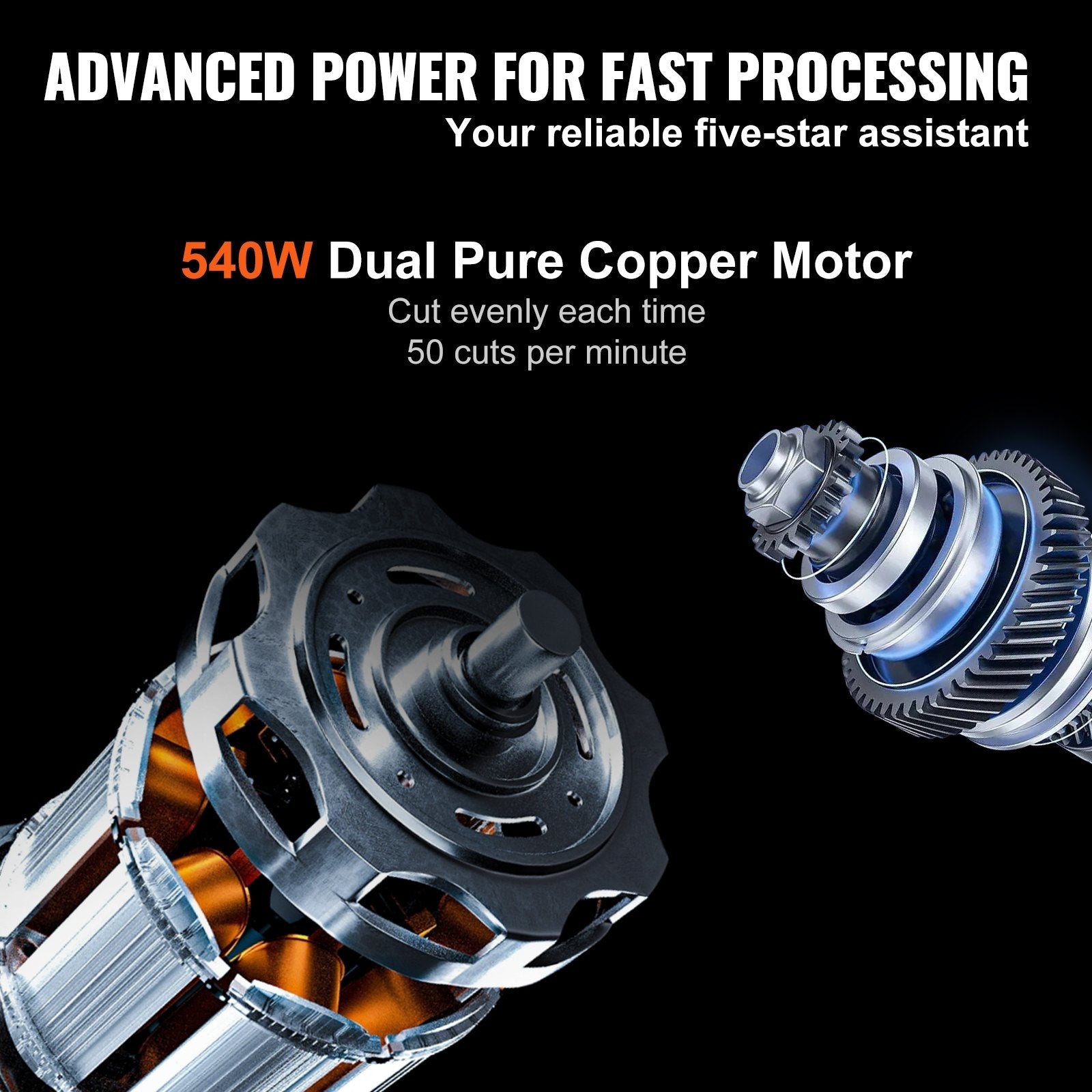 The VEVOR 540W Electric Meat Slicer delivers commercial-grade slicing power in a compact design suitable for home kitchens and small businesses. Equipped with dual 10-inch stainless steel blades, a built-in sharpener, and a 0–15 mm adjustable thickness dial, it’s ideal for slicing meat, cheese, bread, and more. Enhanced with a child lock for added safety and a sturdy cast aluminum body, this food slicer ensures clean, precise cuts with long-lasting reliability and minimal maintenance.