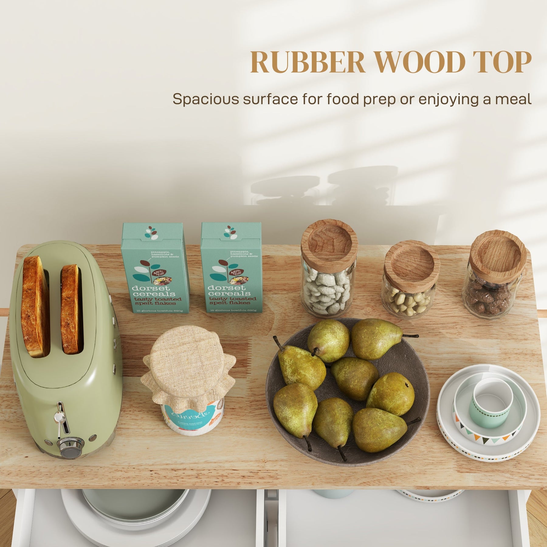 Spacious Dining and Prep Area: 35.4" x 17.5" (90 x 44.5 cm) rubberwood countertop perfect for both dining and meal prep.