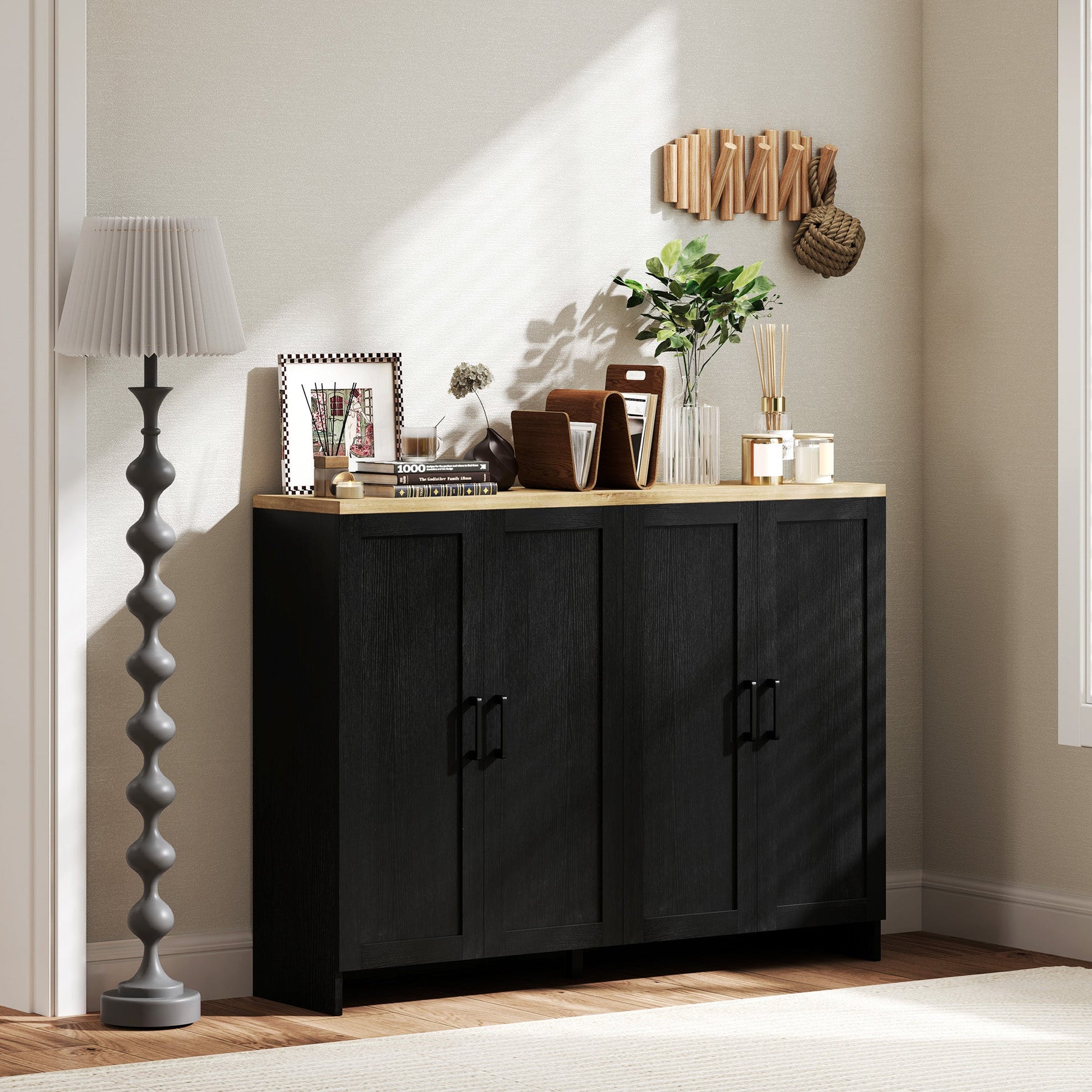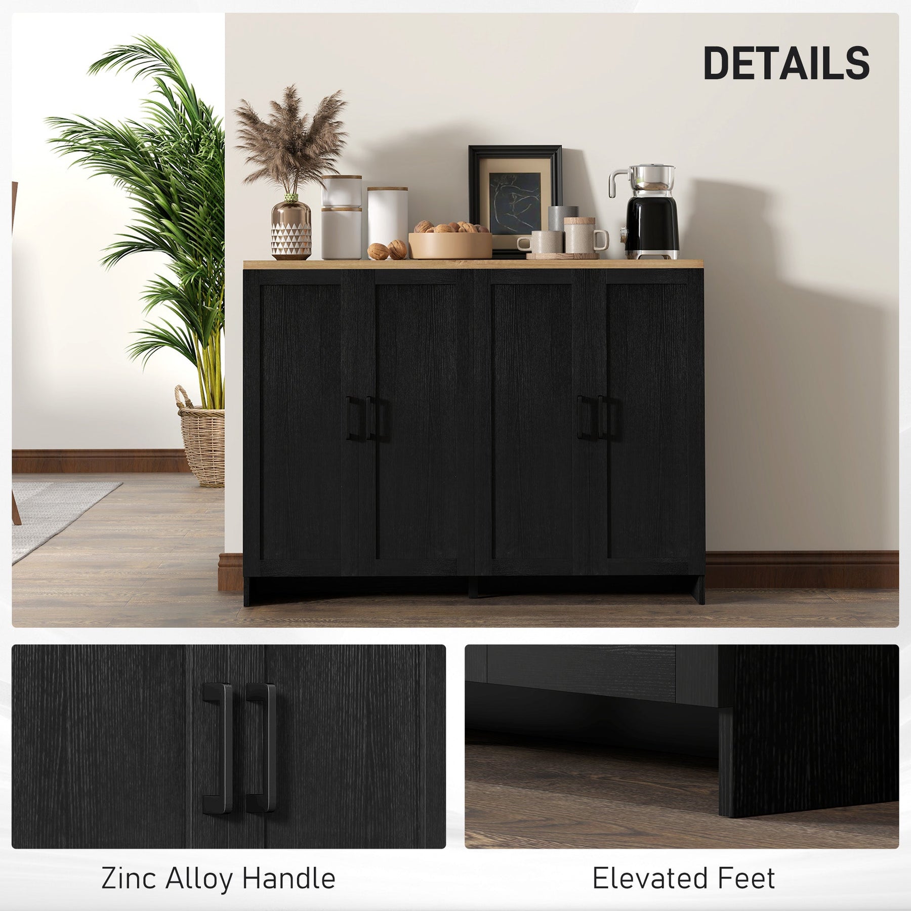 HOMCOM Modern Sideboard Buffet Cabinet, Modern Kitchen Storage Cabinet with 4 Doors Adjustable Shelves, for Dining Room, Black
