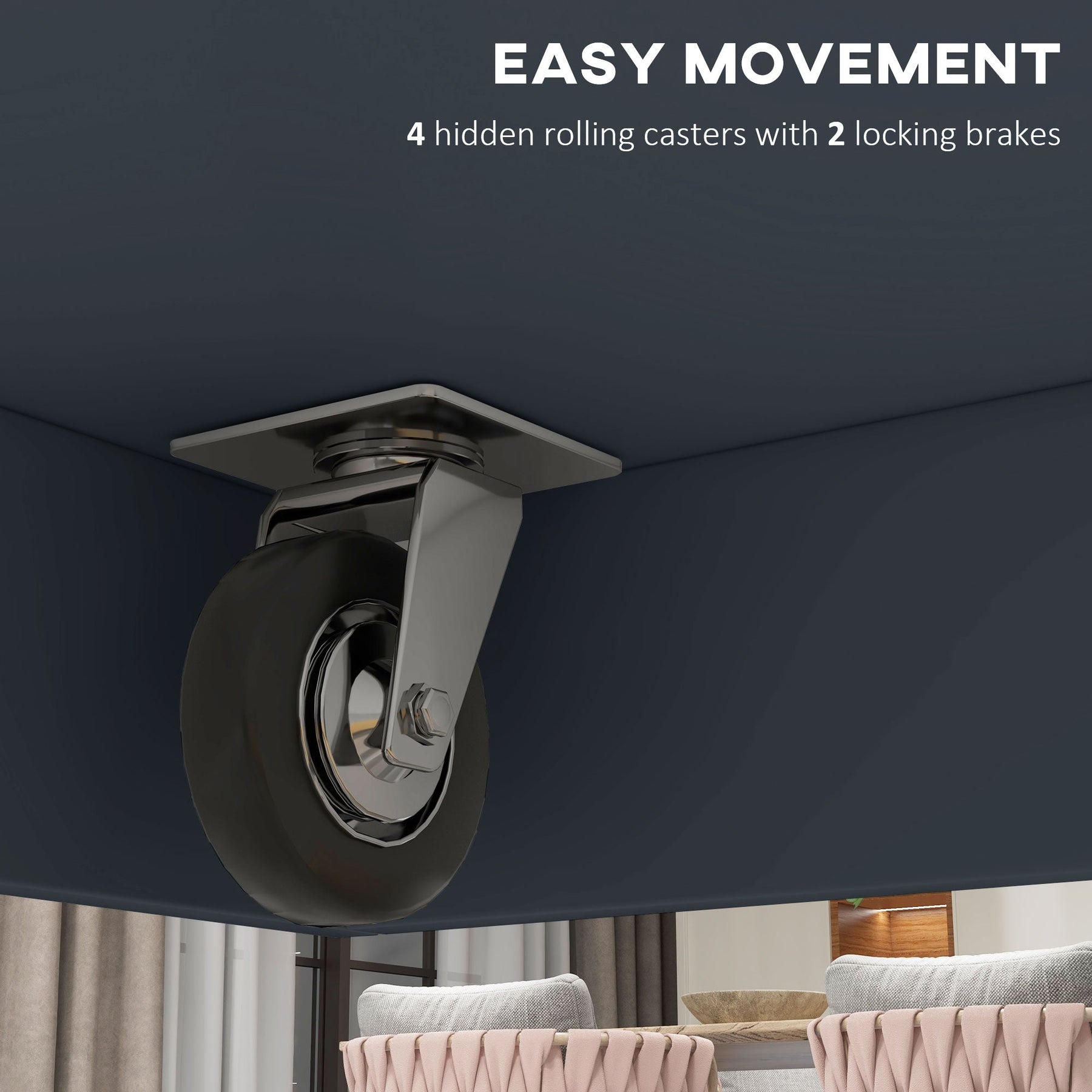 Easy Maneuverability: The mobile kitchen island is designed with four hidden wheels for easy movement, with two lockable brakes for stability when in use.