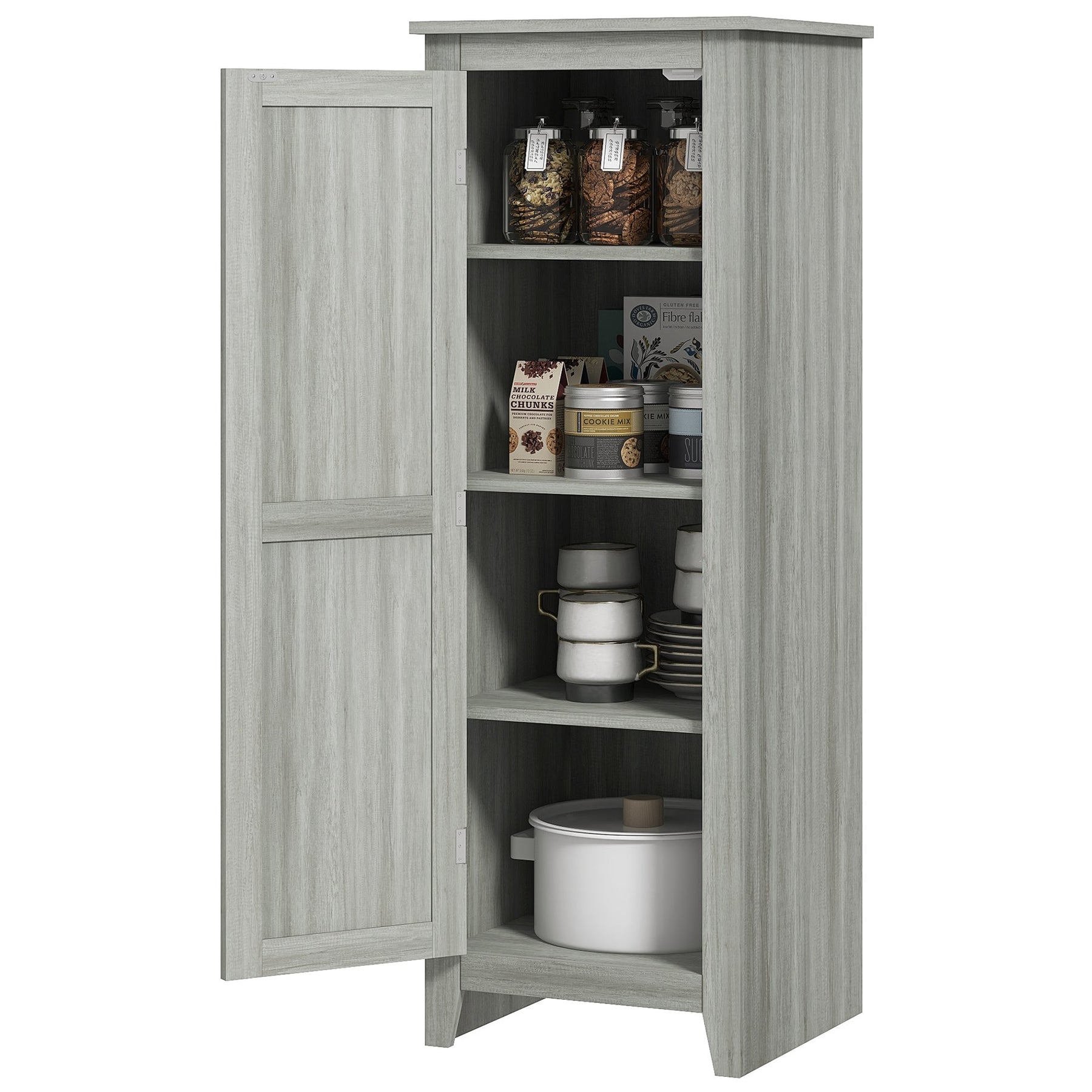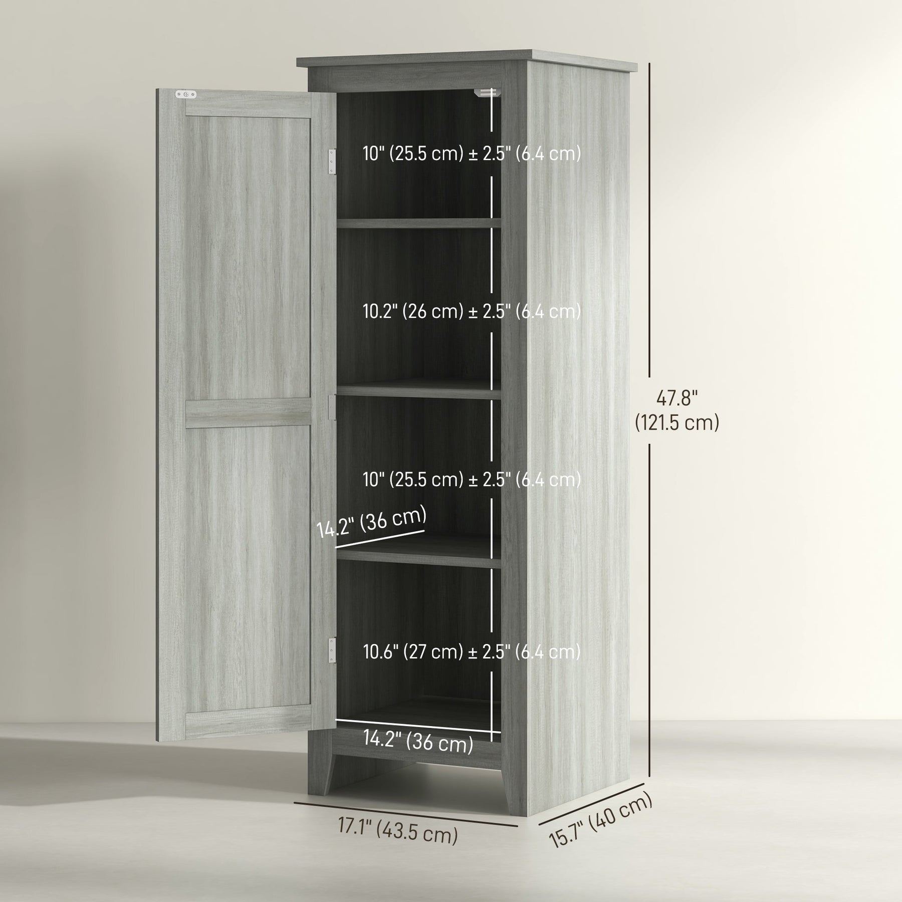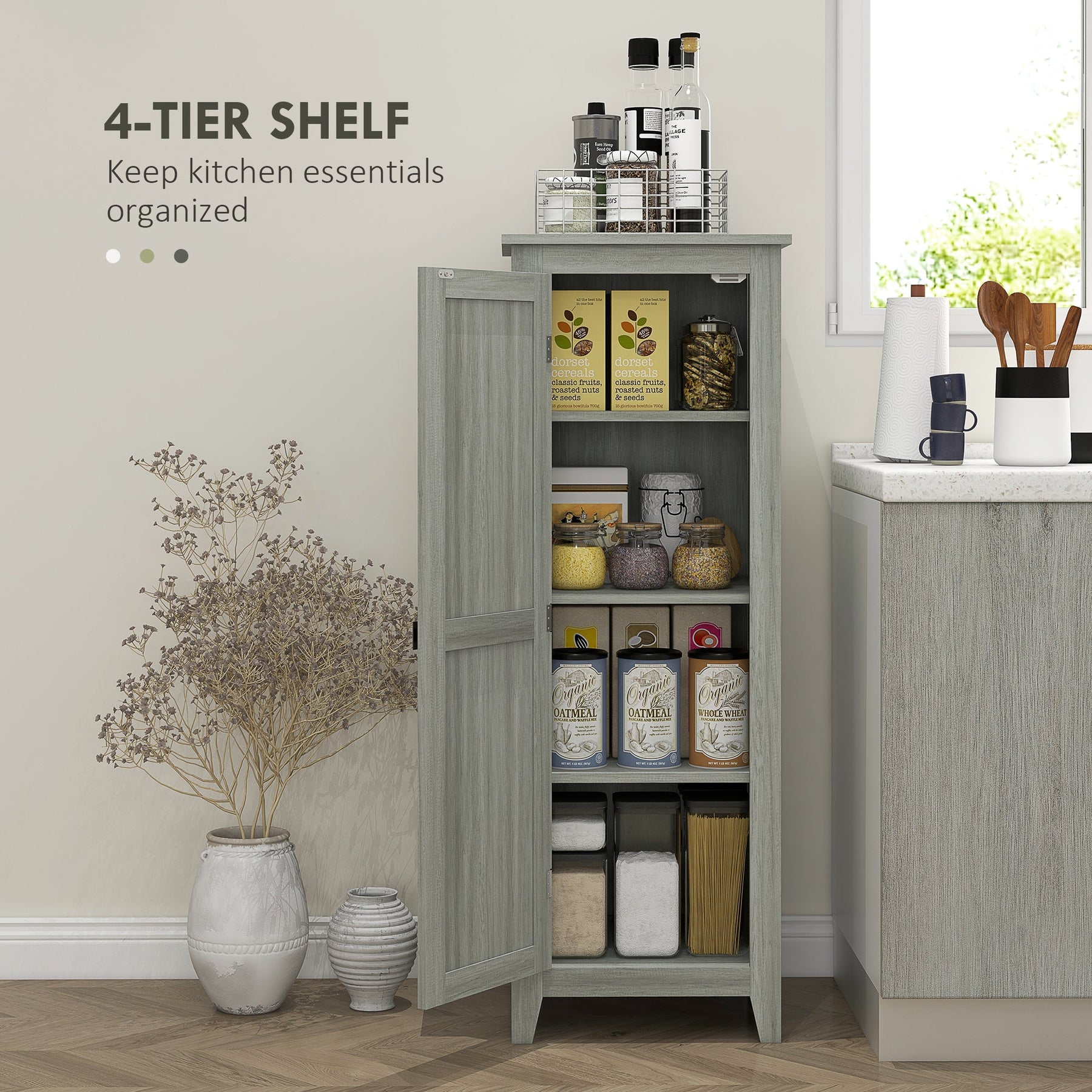 Upgrade your kitchen organization with this sleek 4-tier pantry cabinet, offering ample storage space for dishes, cookbooks, pots, and pans. The upper and lower shelves are 3-level adjustable, allowing for easy customization to fit items of varying heights. Designed to save space, this compact storage solution is ideal for small kitchens or apartments. Featuring farmhouse-inspired details like a barn door and metal handle, it adds both functionality and elegance to your kitchen. The cabinet also includes an anti-tipping device for added stability and safety, ensuring a secure addition to your home.