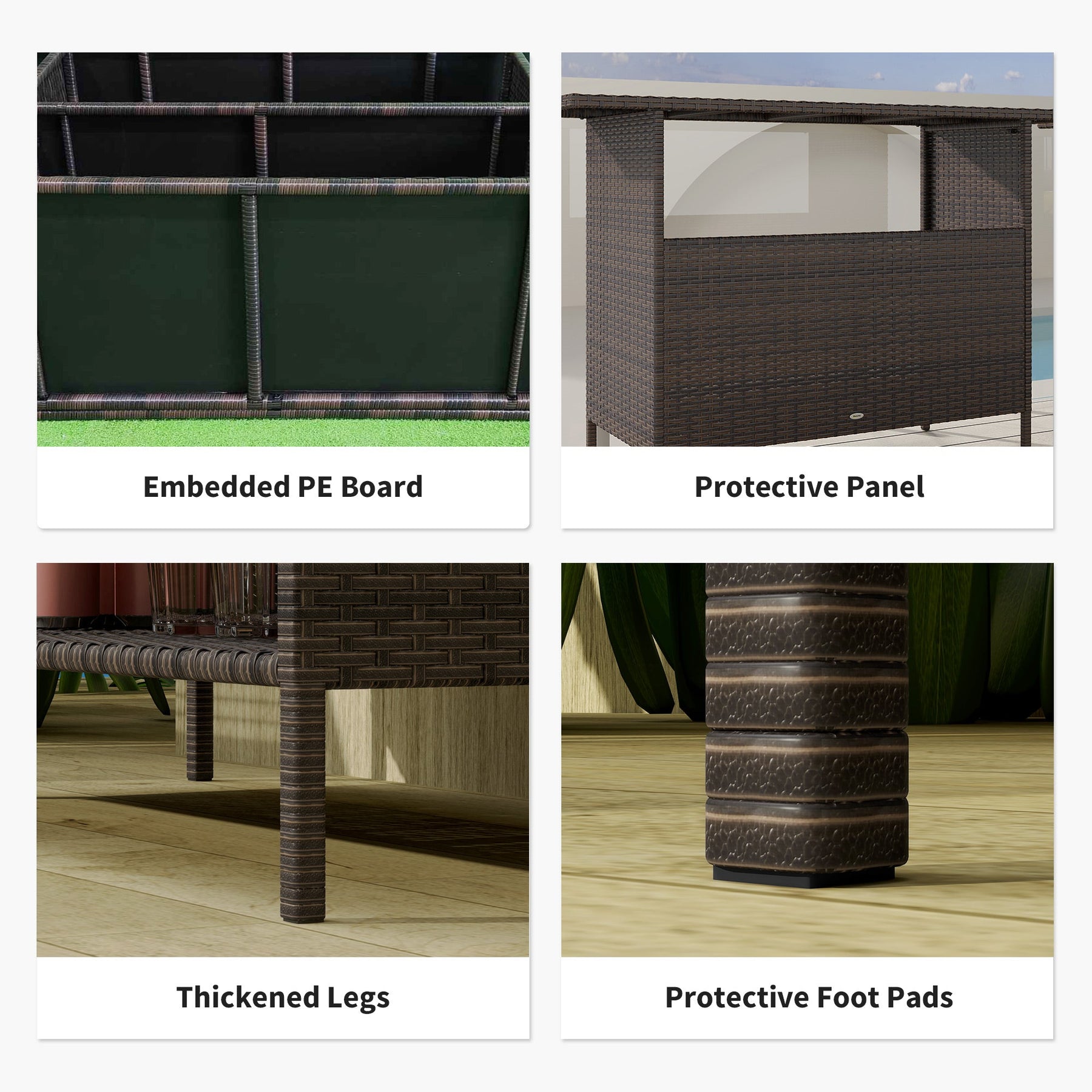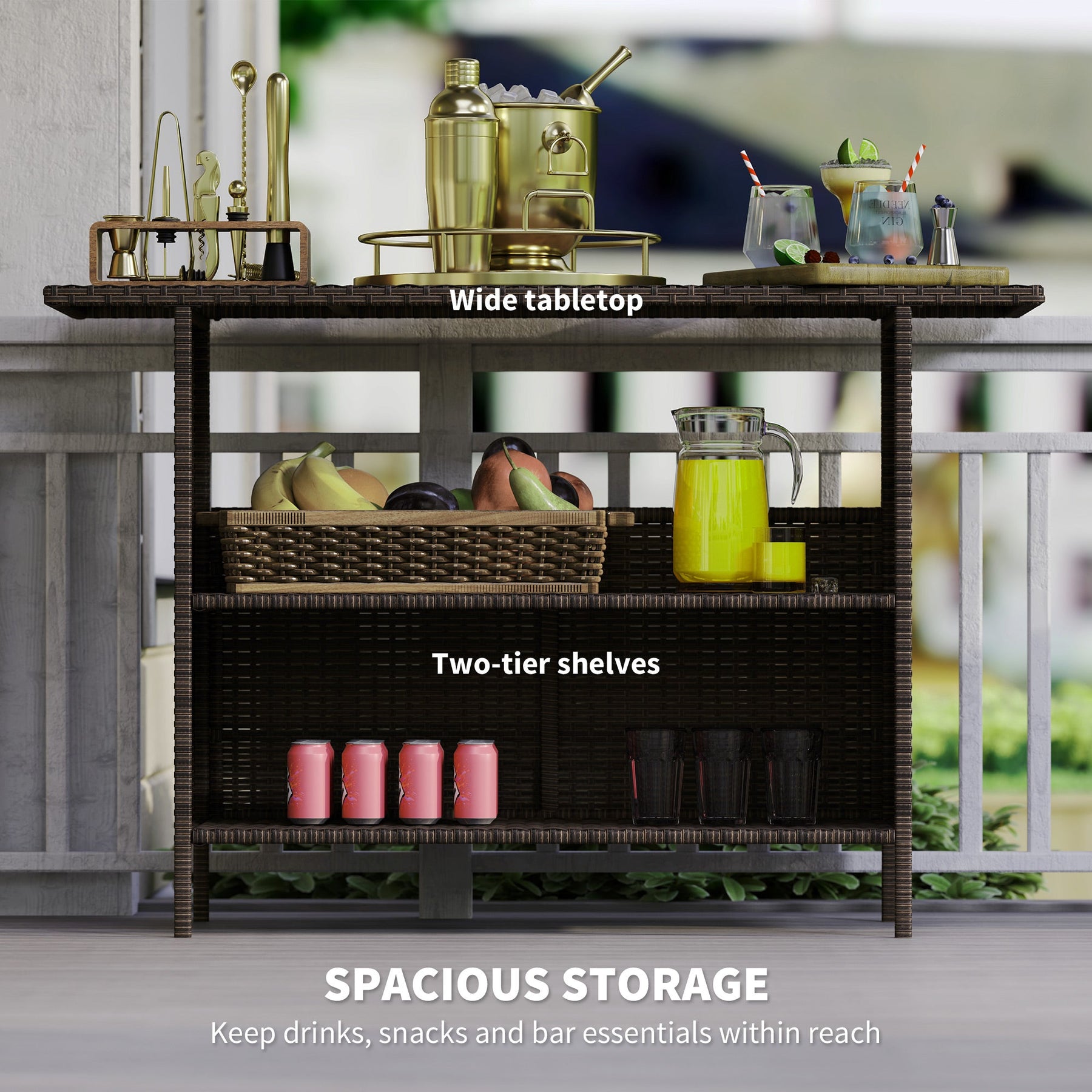 Outsunny Wicker Outdoor Bar Table, PE Rattan Bar Height Patio Table with 2 Shelves, Steel Frame for Garden, Backyard, Dark Brown
