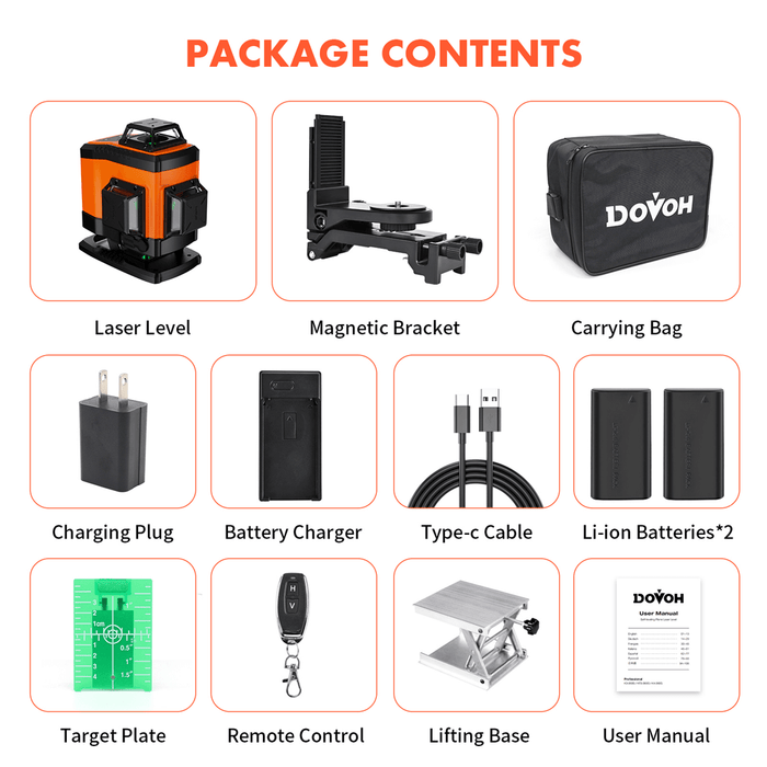 The Dovoh K4-360G Floor Laser Level with 4x360° functionality is a top-tier tool specifically designed to provide ultimate accuracy for leveling and alignment tasks, especially in flooring applications. With four 360° laser lines, this laser level offers full coverage for both horizontal and vertical alignment, ensuring precise results for tile installations, flooring leveling, and other construction needs. Equipped with bright green laser technology, it ensures maximum visibility even in well-lit environments. This self-leveling tool is perfect for professionals and DIY enthusiasts looking for an easy-to-use, high-performance level to improve their floor installations and general leveling tasks.