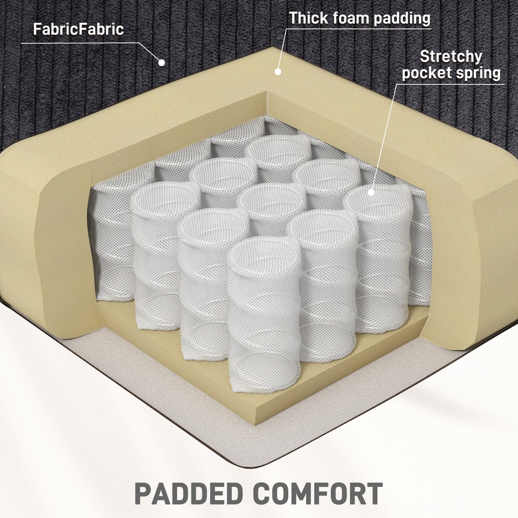 Comfort and Durability: Upholstered in soft, long-lasting corduroy with a pocket spring system, serpentine springs, and elastic bands for stretch, bounce, and softness.