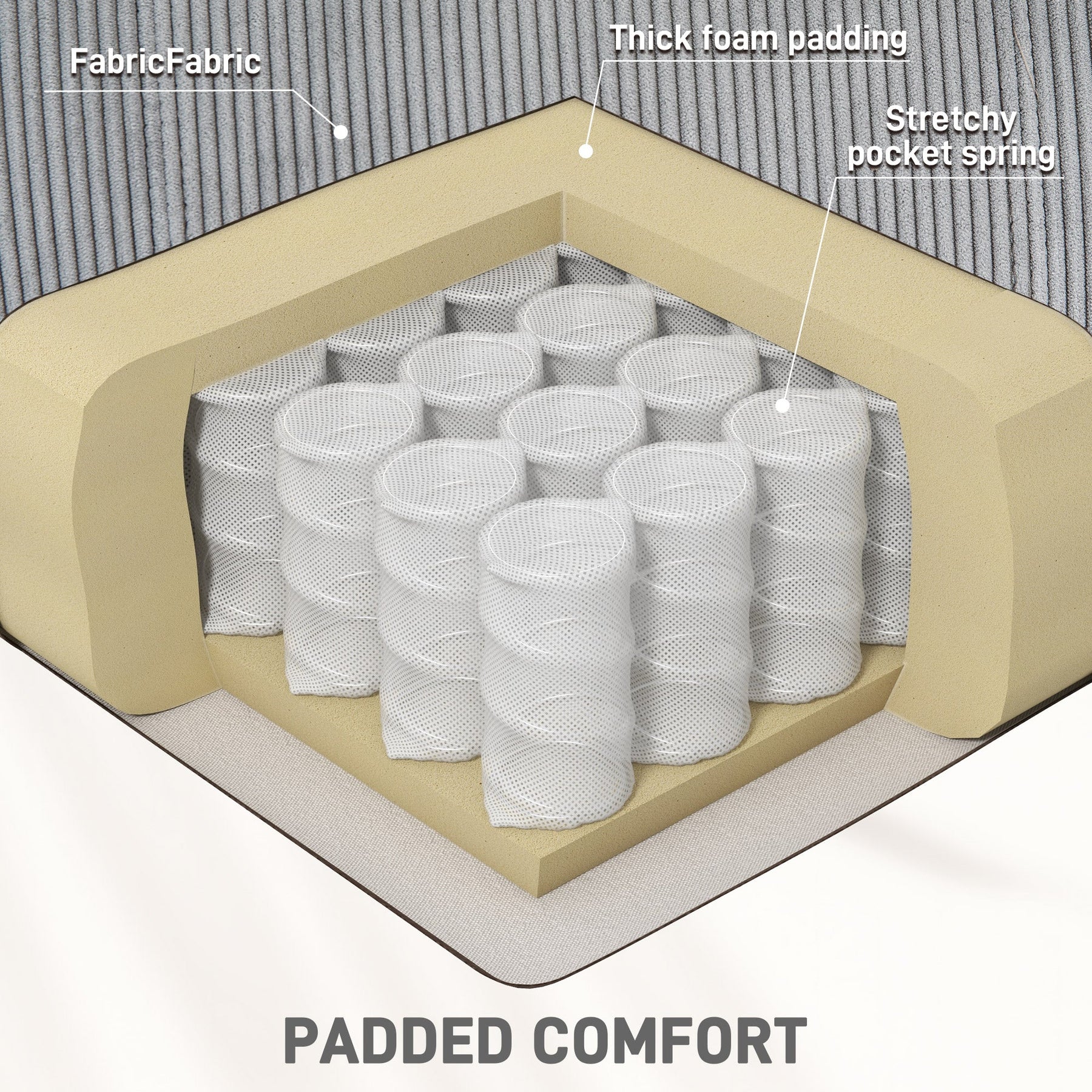 Comfortable Upholstery: Soft, long-lasting corduroy fabric combined with pocket springs, serpentine springs, and elastic bands for superior comfort and softness.