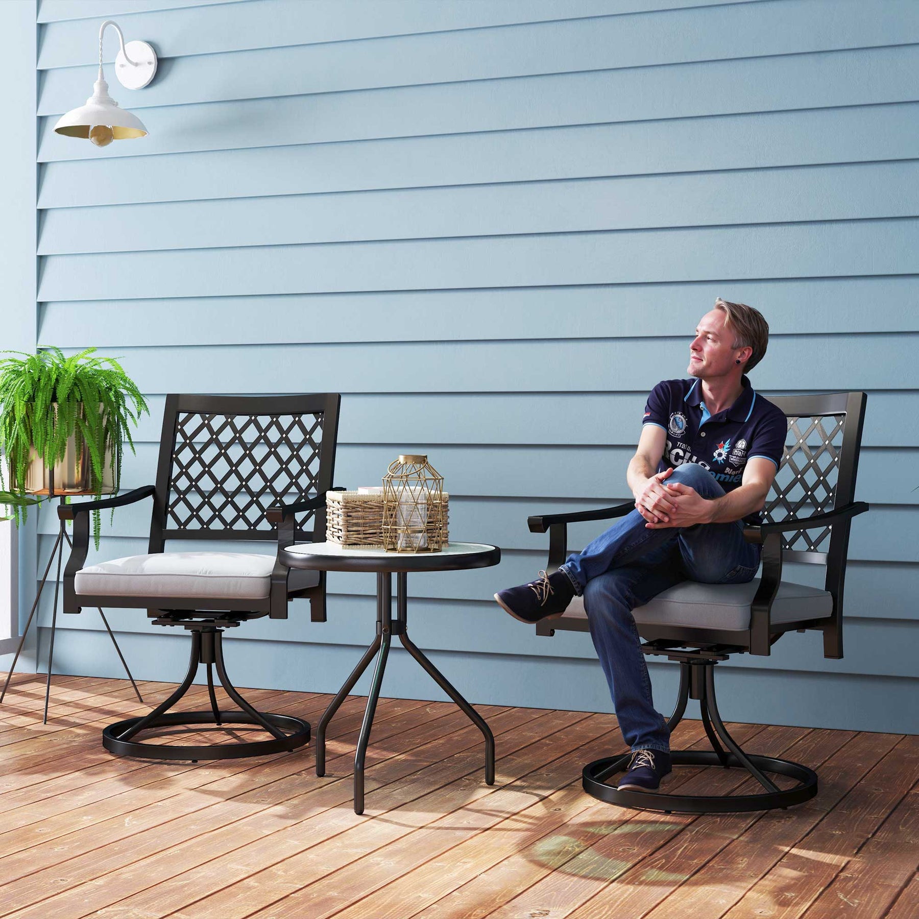 Outsunny Outdoor Patio Chairs Set of 2, Metal Swivel Rocker Chairs with Cushion and Armrests for Backyard, Garden, Patio