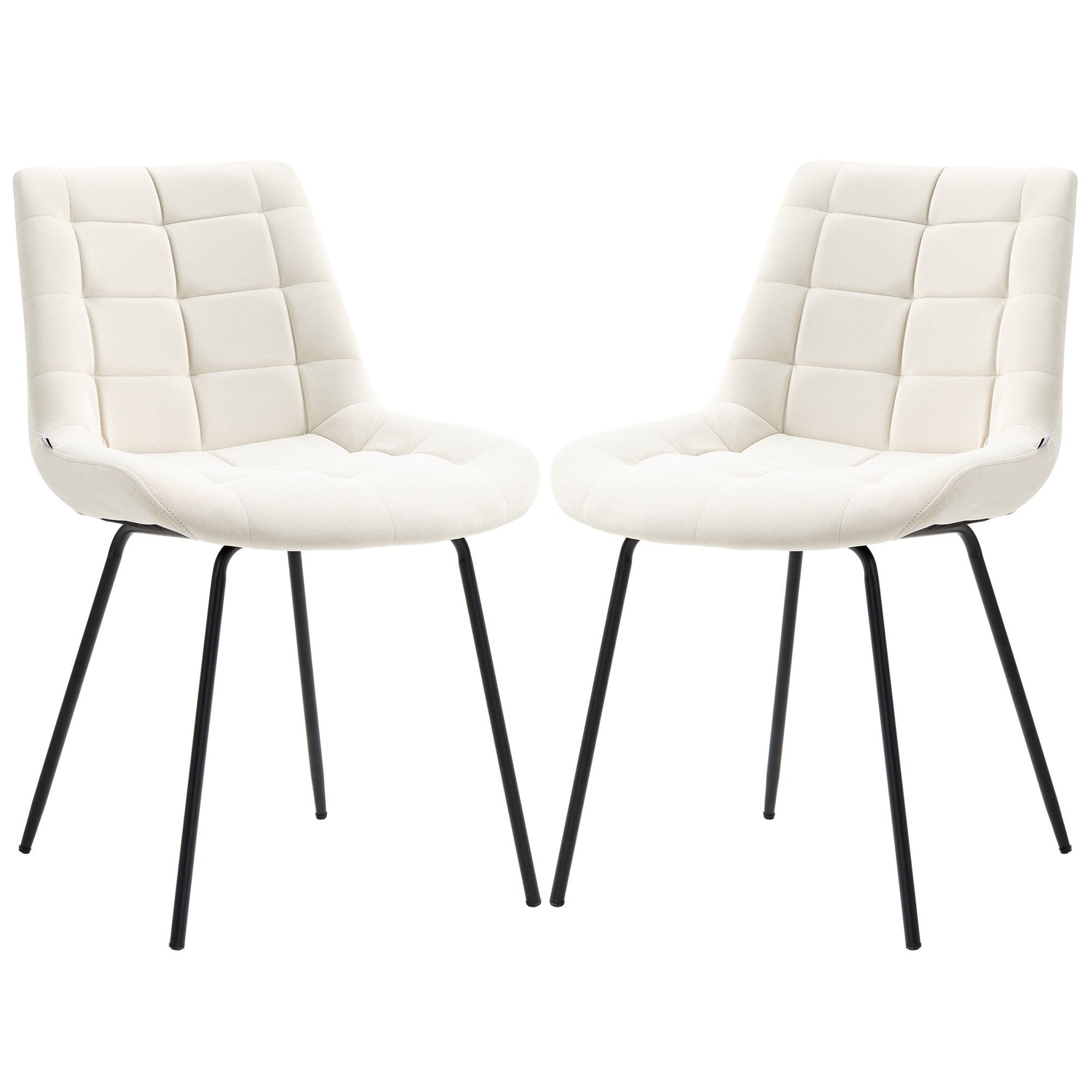 HOMCOM 2 Pieces Dining Chairs, Set of 2 Upholstered Kitchen Chairs with Padded Seat and Steel Legs for Living Room Cream White
