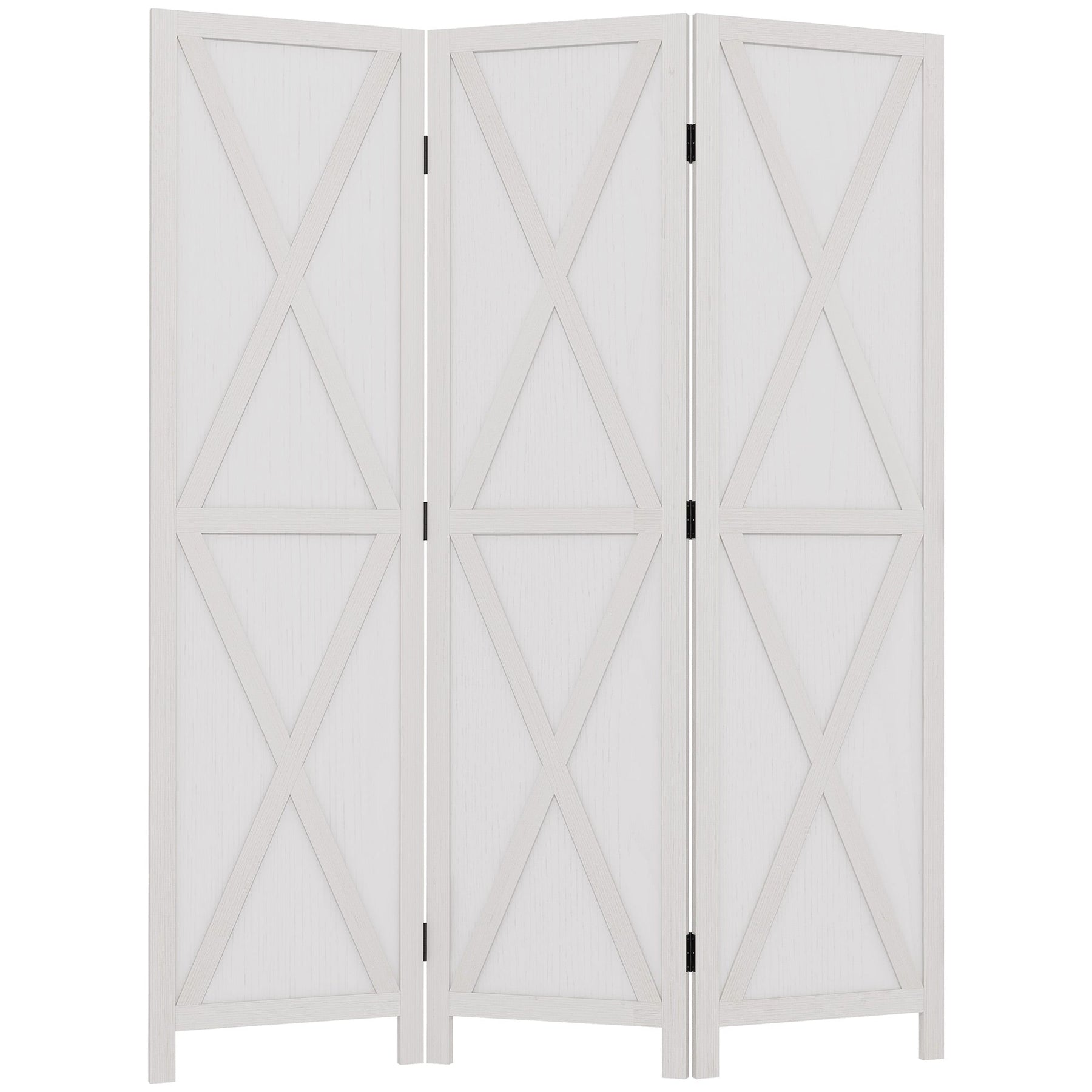 Add a touch of rustic charm and privacy to your space with this stylish 3-panel folding privacy screen. Featuring a farmhouse-inspired design with X-shaped patterns, it effortlessly divides larger rooms or creates a private, cozy space in any room of your home. Crafted from solid paulownia wood, this durable room separator is designed for easy folding and storage, making it perfect for small spaces. The 9 connecting metal hinges allow the screen to fold smoothly, and the elevated base ensures proper air circulation. Whether used in your living room, bedroom, or home office, this folding screen is a functional and decorative addition to any space.