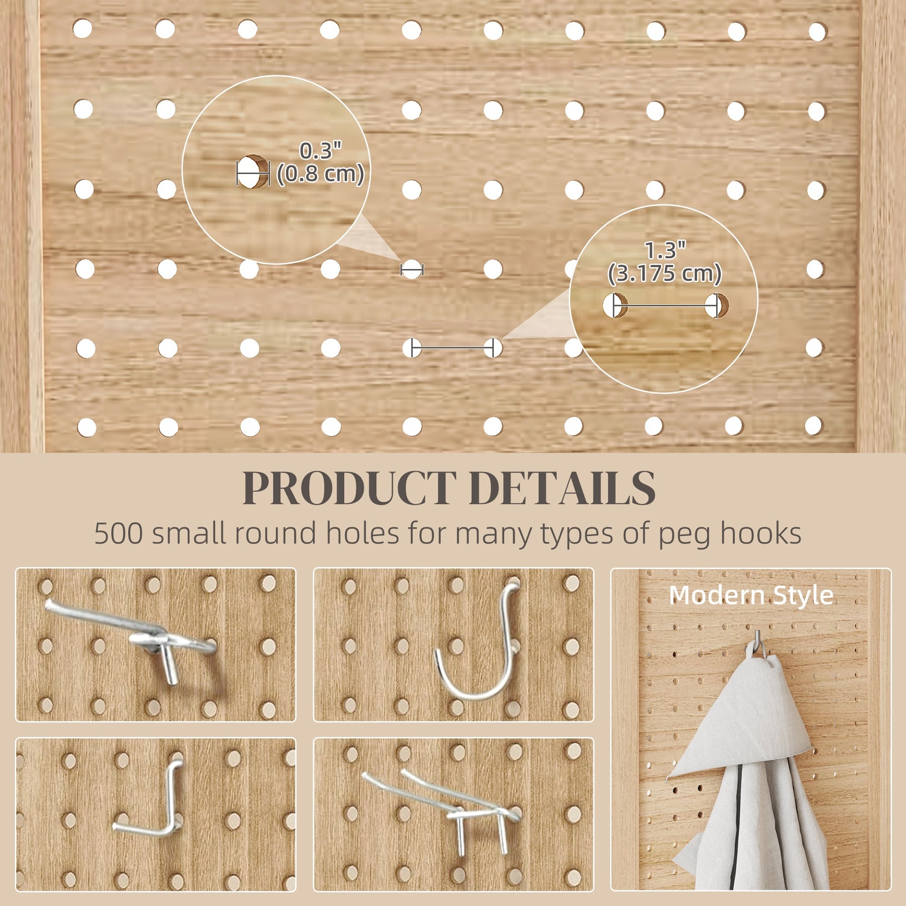 Customizable Design: 500 pegboard holes per panel allow for DIY decoration and storage options using hooks or accessories.