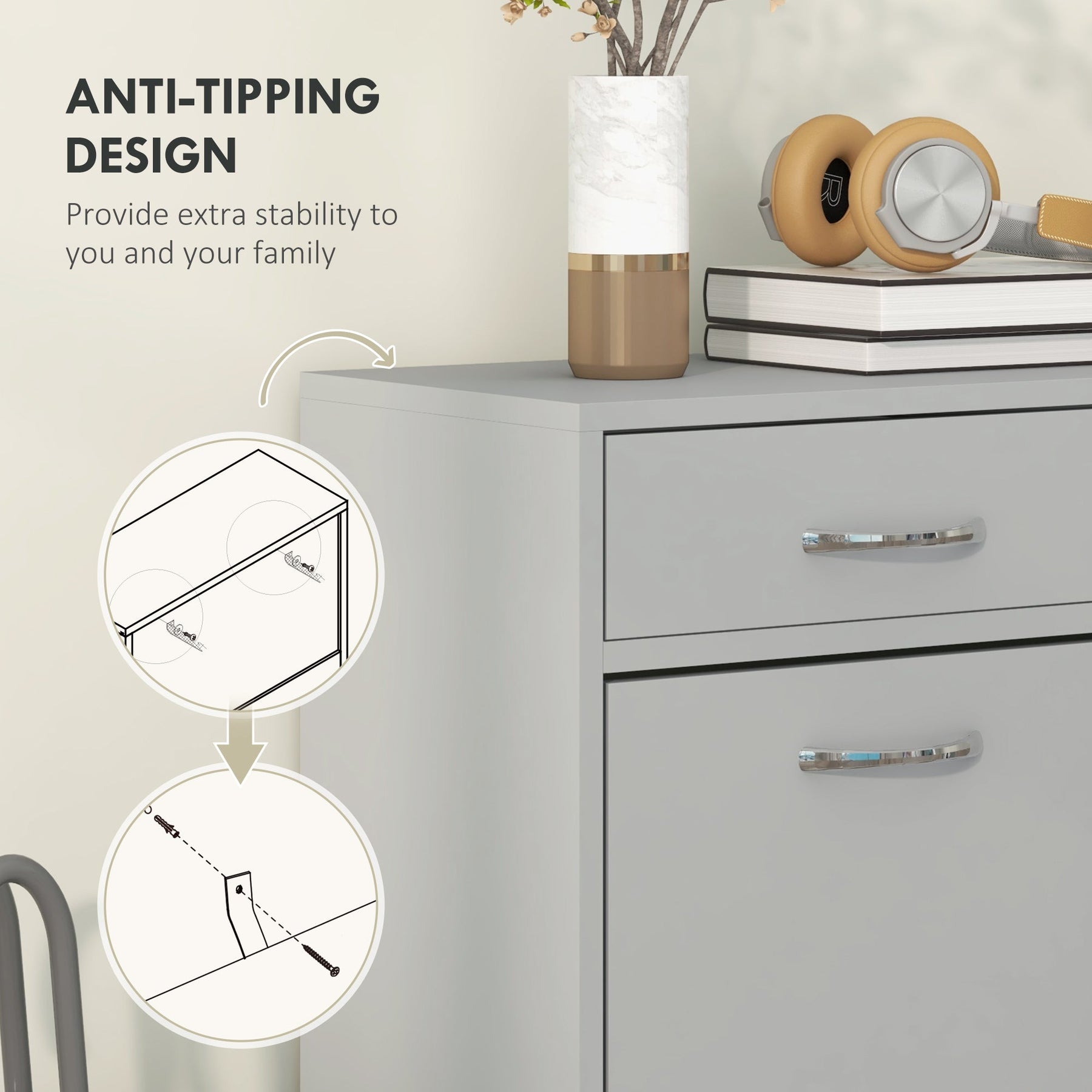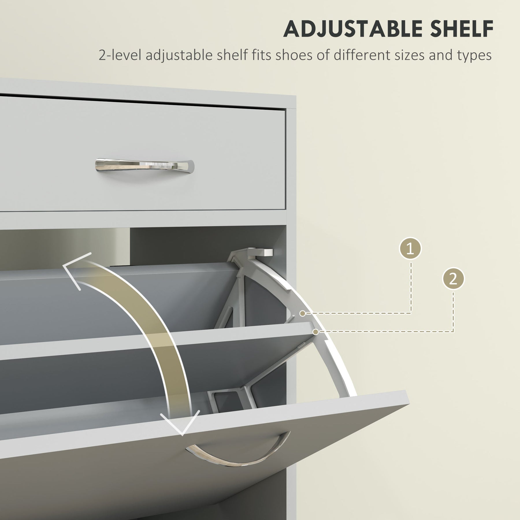 HOMCOM Narrow Shoe Storage with 2 Flip Drawers and Adjustable Shelves Shoe Organizer Cabinet for 12 Pairs of Shoes, Grey
