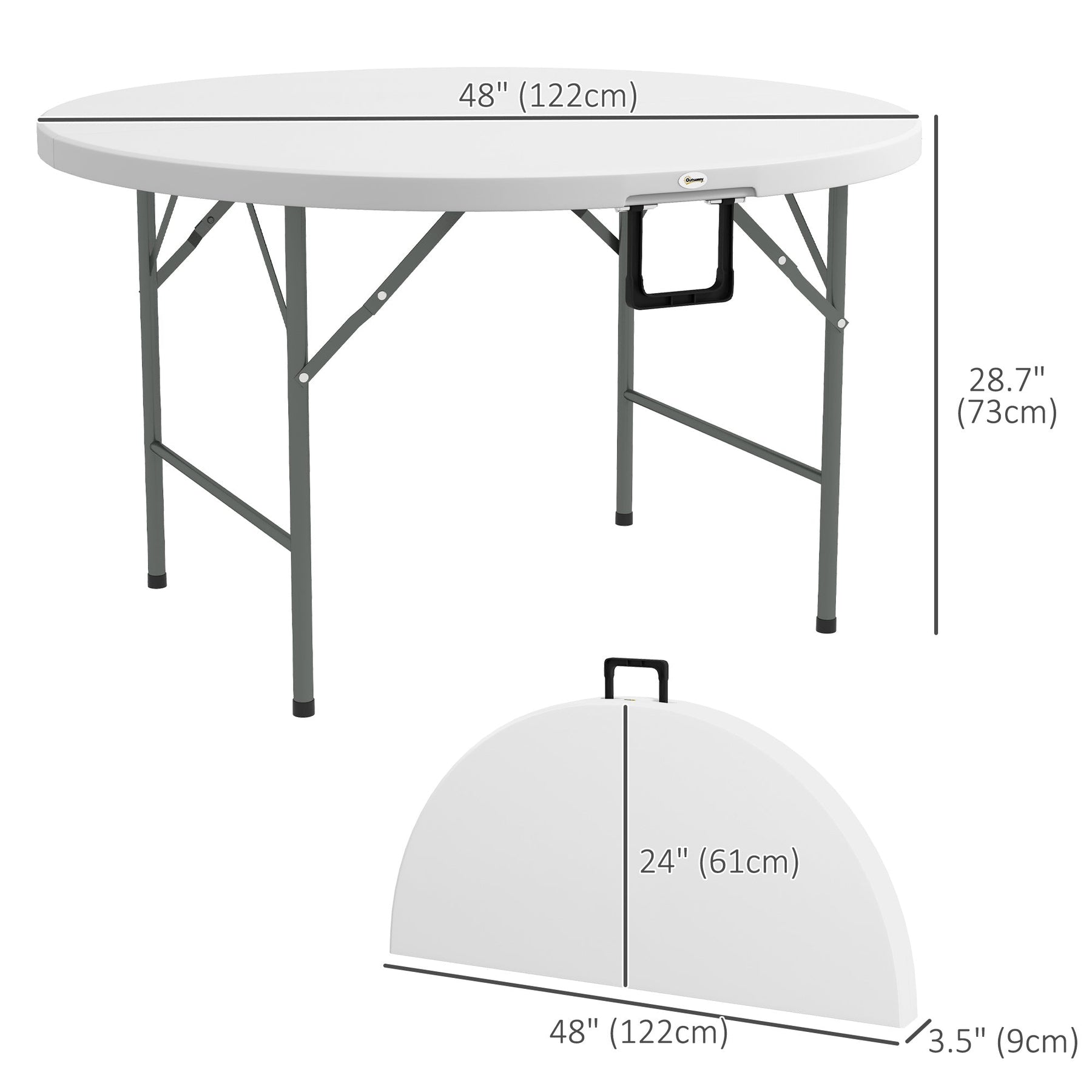 Upgrade your outdoor setup with this 48" Round Folding Patio Side Table, designed to bring people together. Perfect for group gatherings, camping trips, outdoor picnics, or simply creating a cozy conversation space on your patio or in your garden. The durable metal frame is finished with a weather-resistant powder coating and topped with eco-friendly HDPE lumber—crafted from recycled materials for long-lasting use that resists splintering, cracking, or peeling. Best of all, the foldable design allows you to easily transport and store the table when not in use. Minimal assembly required, so you can start enjoying your space faster.