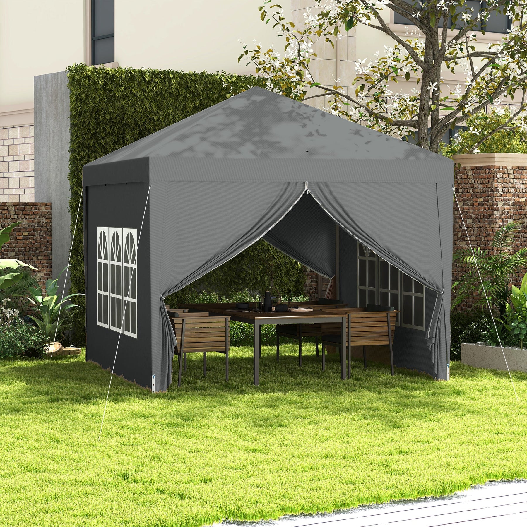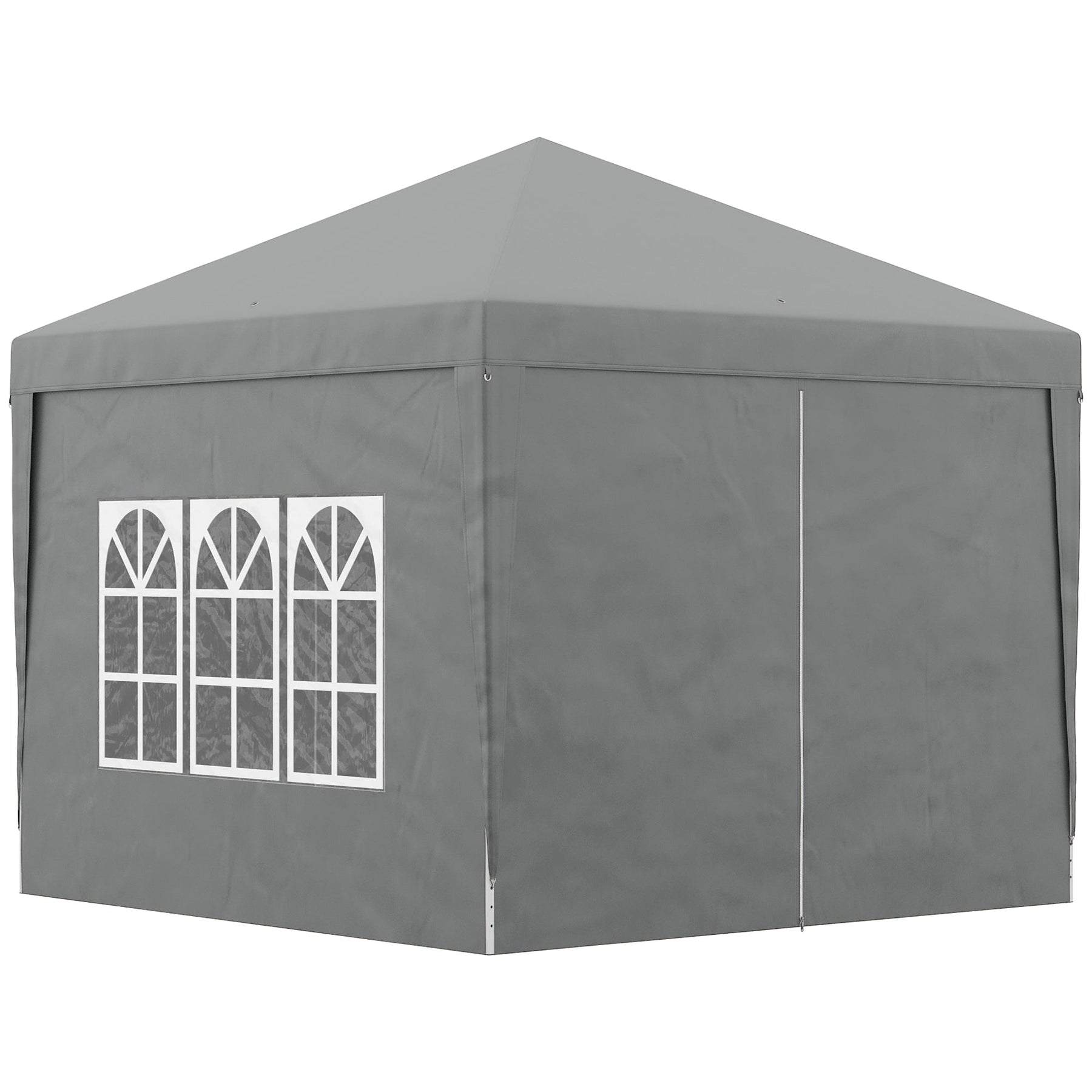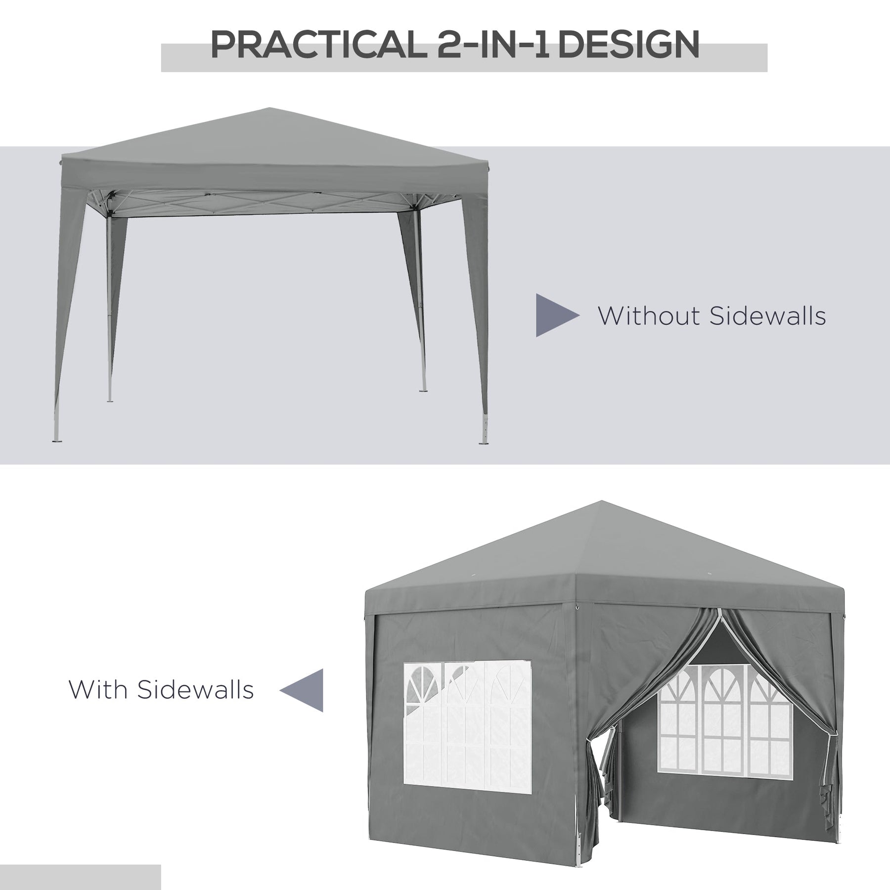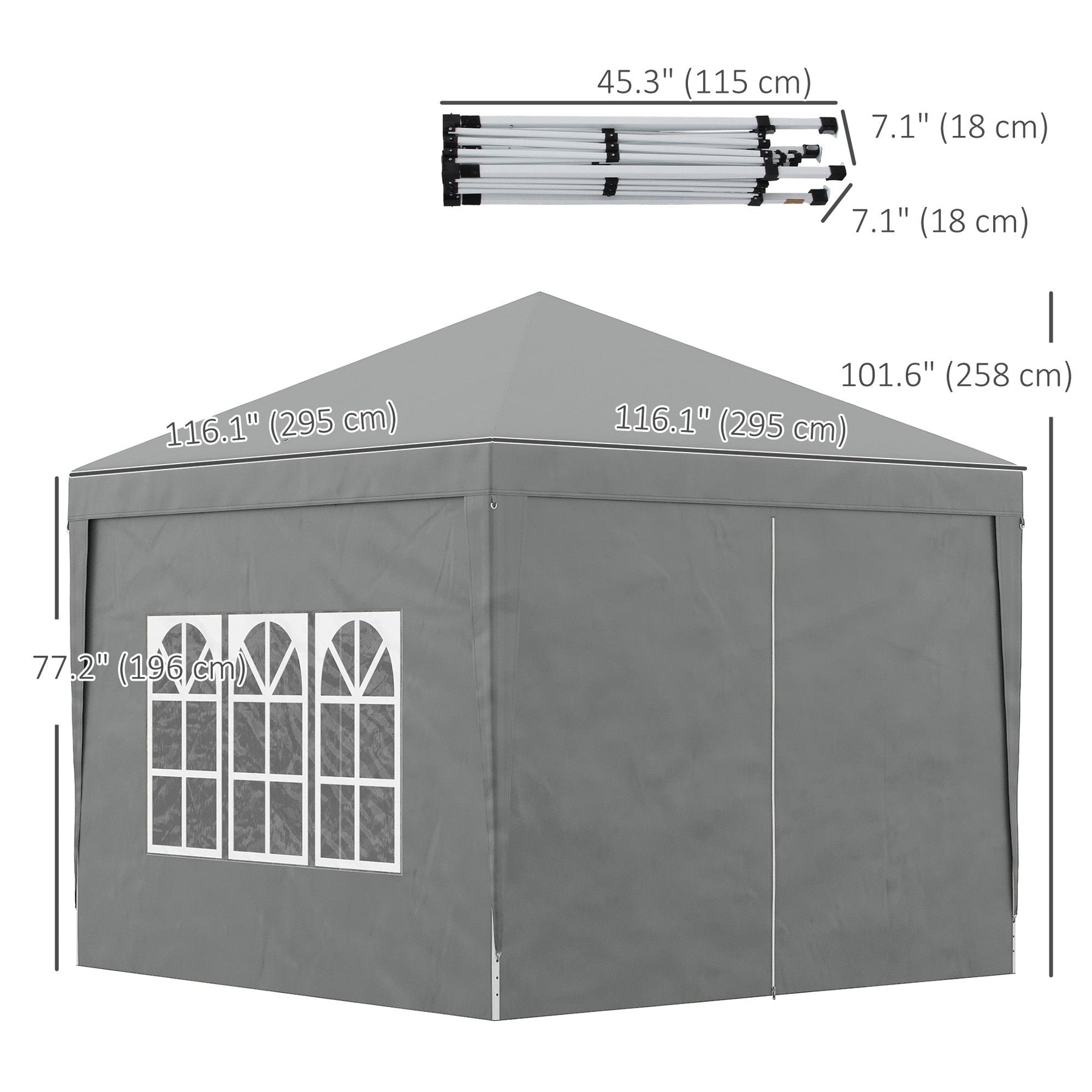 Outsunny 10'x10' Outdoor Pop Up Canopy Tent, UV Resistant Wedding Gazebo 3 Level Adjustable Heights, with Carrying Bag Light Grey