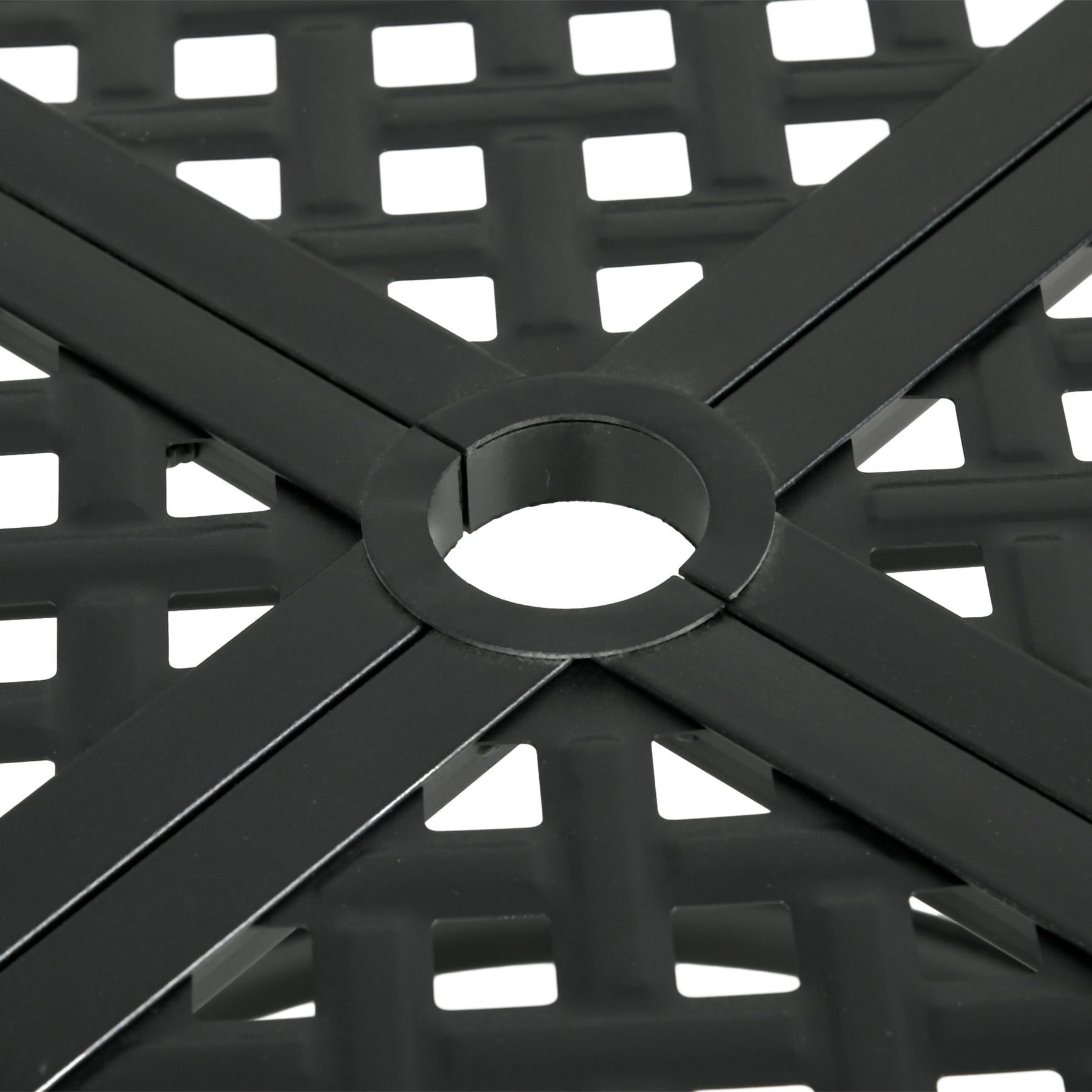 Enjoy outdoor dining with this beautifully designed round patio dining table, crafted with a solid steel frame and powder-coated finish for added durability and stability. Perfect for family or friend gatherings, the spacious Φ41.7" (Φ106 cm) tabletop offers ample space for four people to sit comfortably. The table also features a central umbrella hole, with a Φ2" (Φ5 cm) diameter, making it compatible with patio umbrellas of various sizes (Φ38/42/45/48mm poles) for added shade and comfort. An additional hole under the tabletop ensures better umbrella fixation. With its stunning grid design and all-steel construction, this elegant table captures the essence of sophistication and is the perfect addition to your outdoor space. Whether you're hosting a summer barbecue or enjoying a quiet afternoon, this table is built to provide both style and functionality.