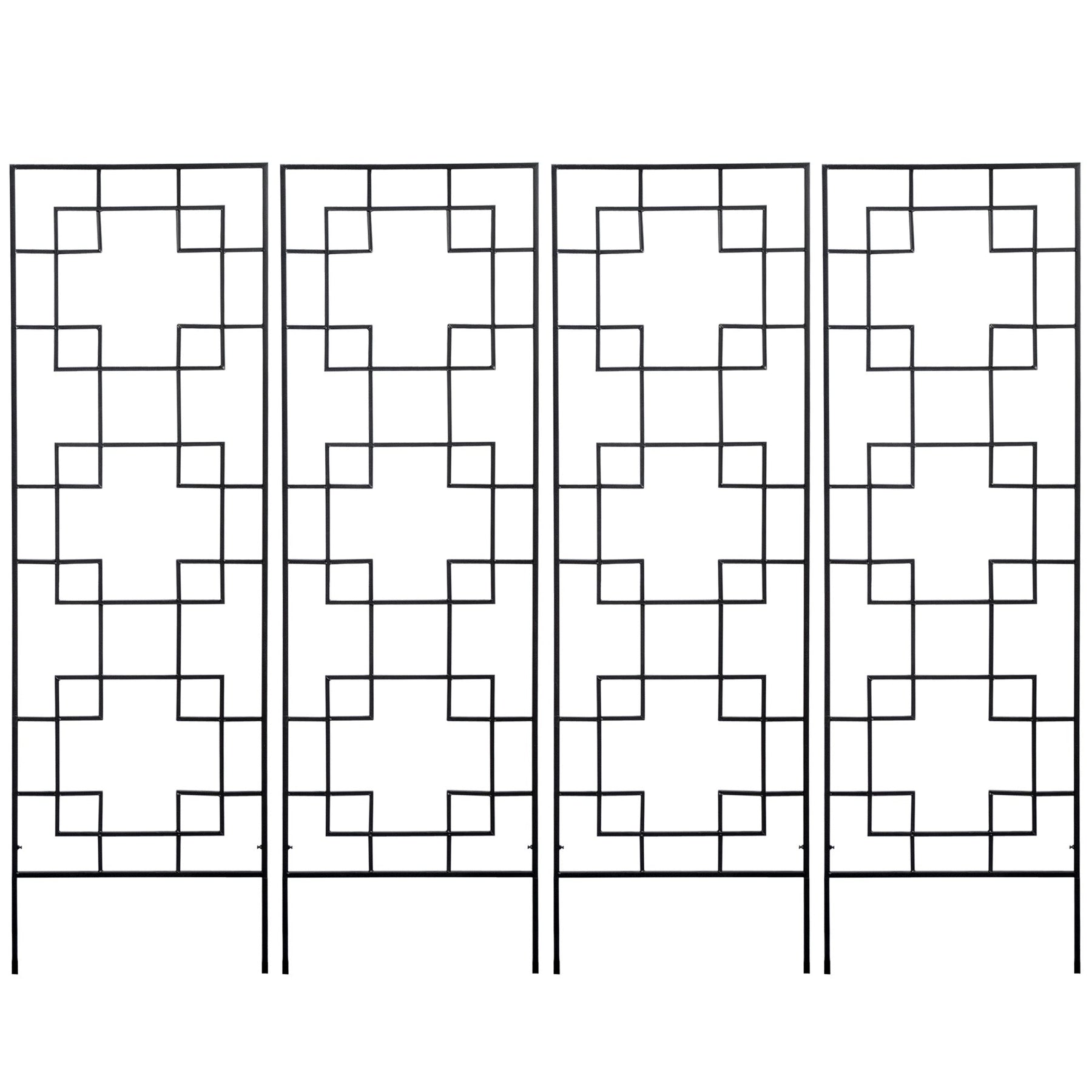 Outsunny 72in Garden Trellis with 4 Mental Grid Panels for Roses, Cucumbers & Vine Plants, Rust-Resistant for All Weather Use
