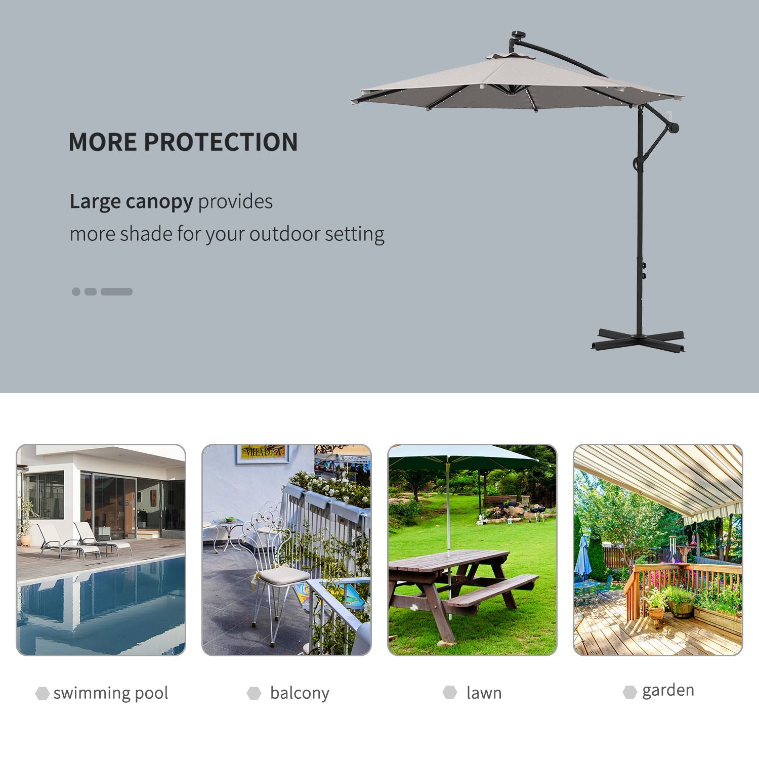 • UV Protection: Ideal for gardens, pools, backyards, and other outdoor spaces, providing anti-UV protection and ample shade.