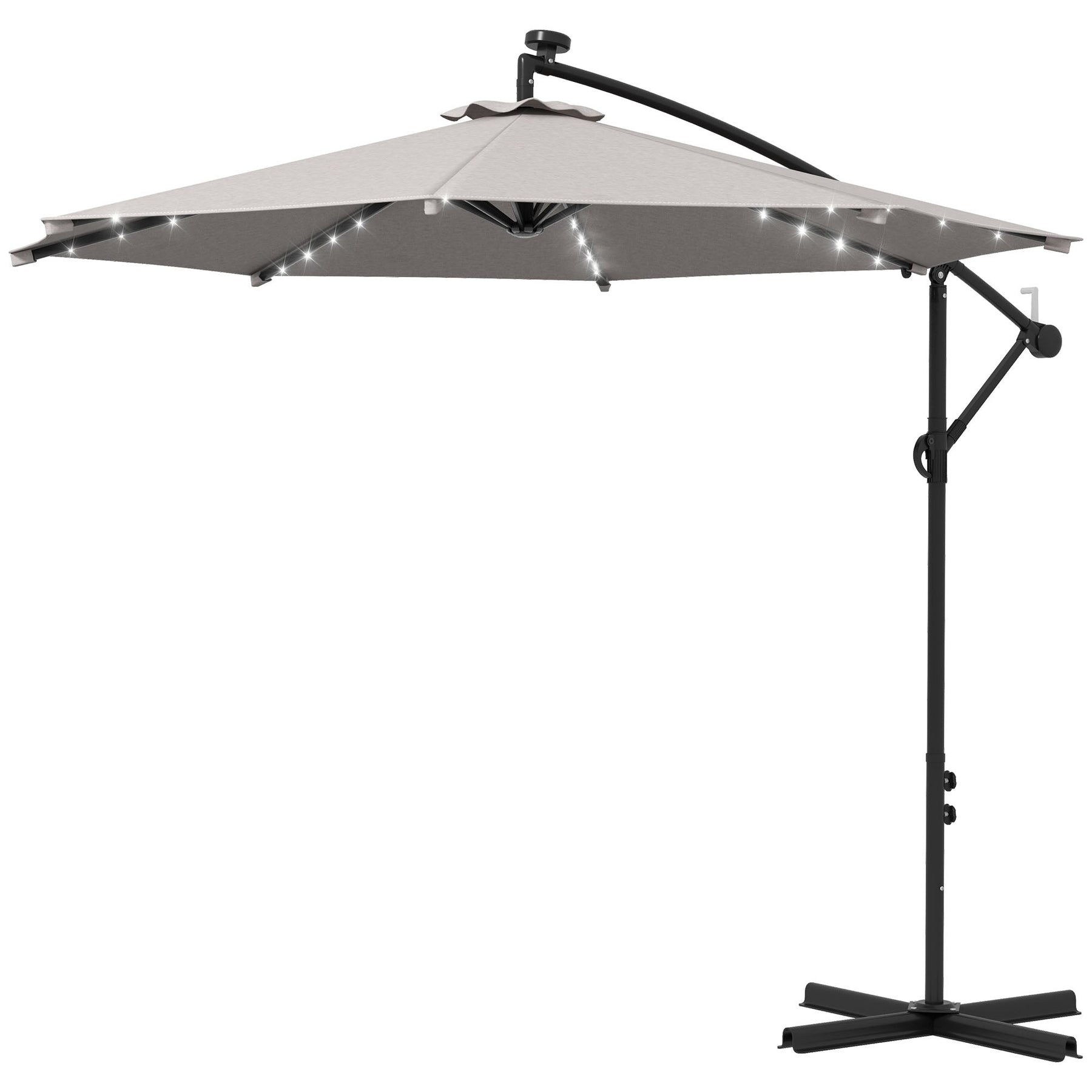 Outsunny Cantilever Umbrella: 10ft Outdoor Banana with Solar Lights Adjustable Angle Light Grey