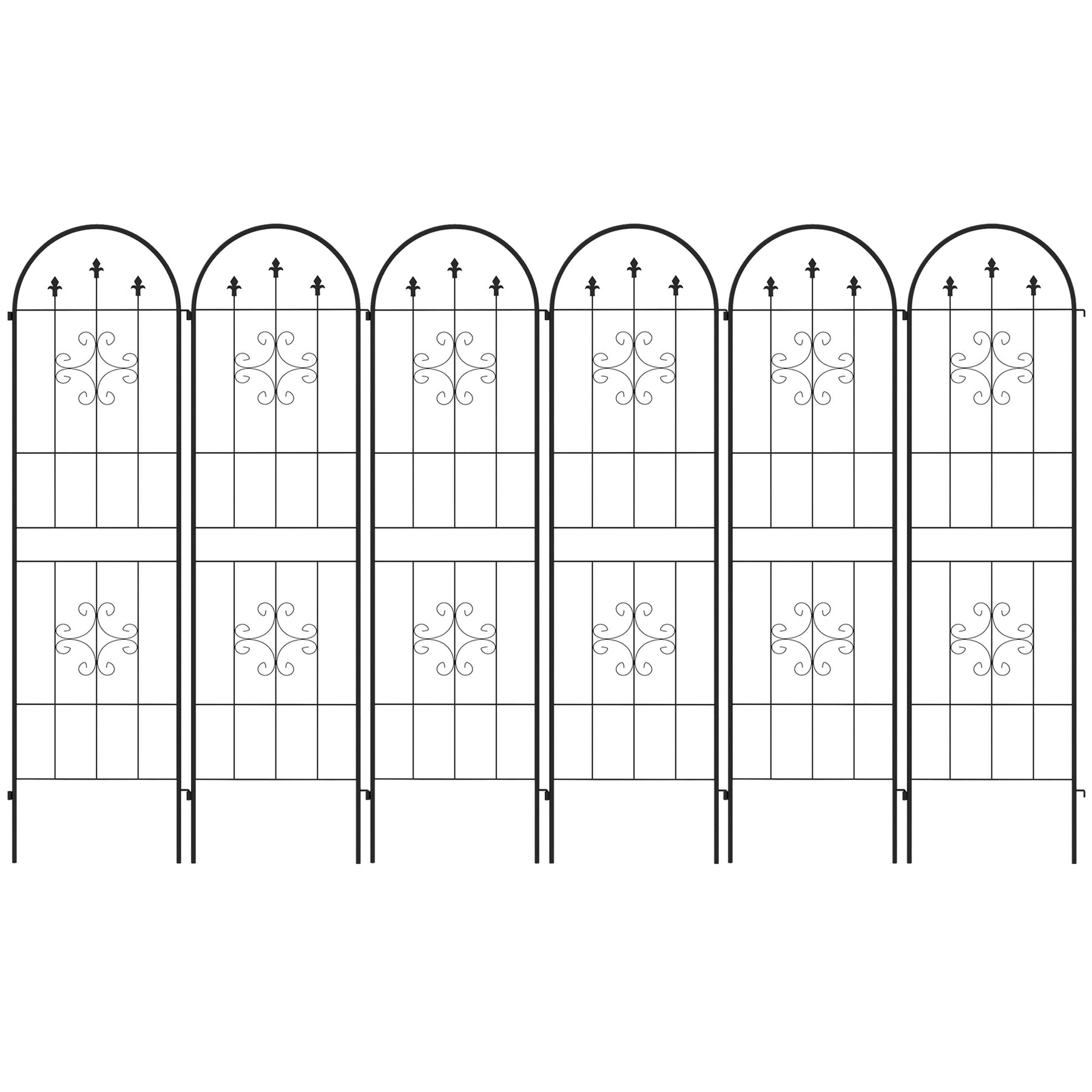 Maximize your garden's potential with this pack of 6 plant trellis panels, designed to offer optimal support for your plants and vines. These trellis panels keep your plants organized, preventing tangling and allowing for maximum growth in a compact space. Featuring ground inserts that can be driven deep into the soil, the trellis panels provide stable, windproof support and can hold even heavier plants with ease. These panels are versatile enough to be grouped together, creating a beautiful statement fence or providing elegant privacy for your outdoor space. Constructed from durable metal and treated with a rust-resistant powder coating, these trellis panels are perfect for long-lasting outdoor use, offering both functionality and style for your garden.