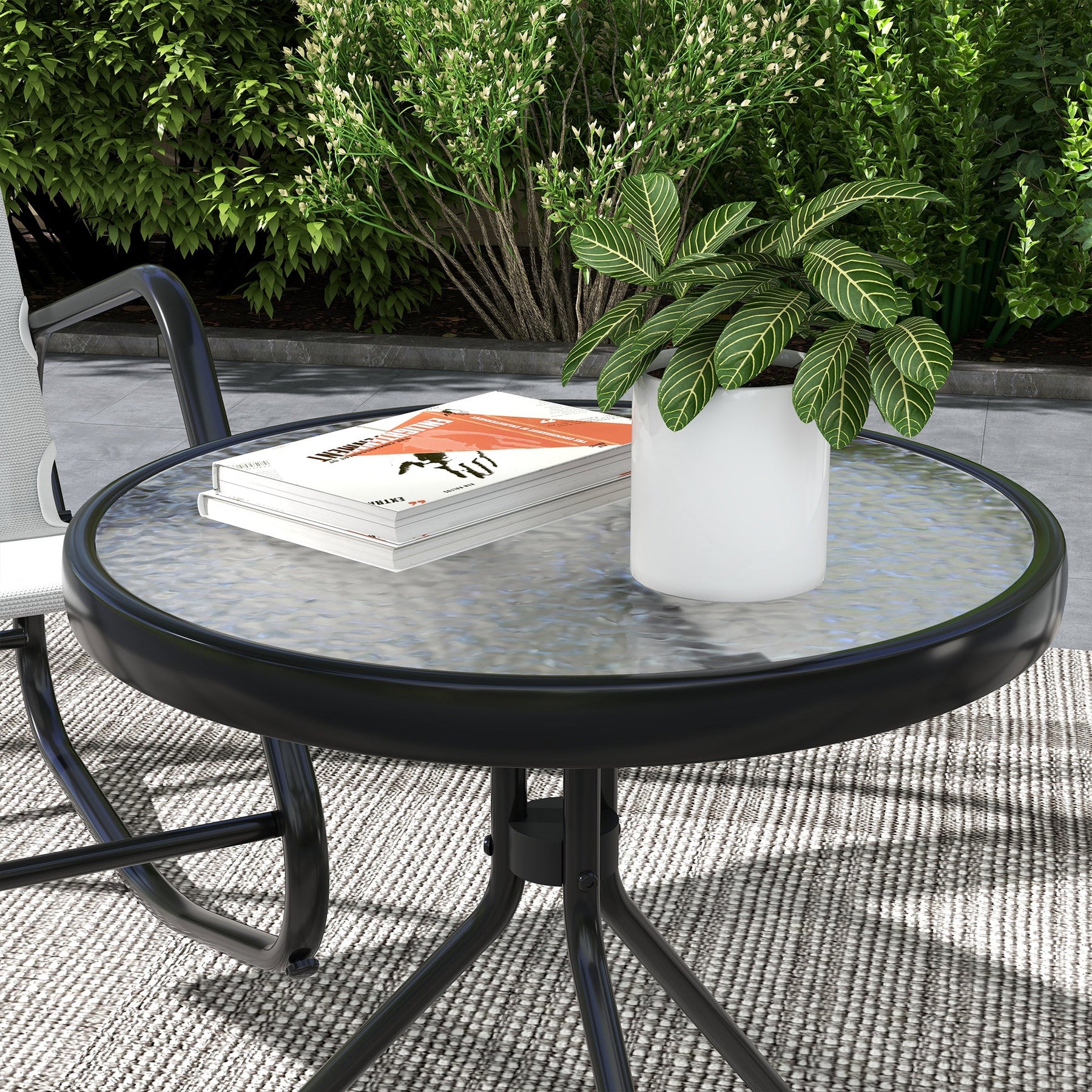 • Tempered glass tabletop perfect for drinks, books, or small items.