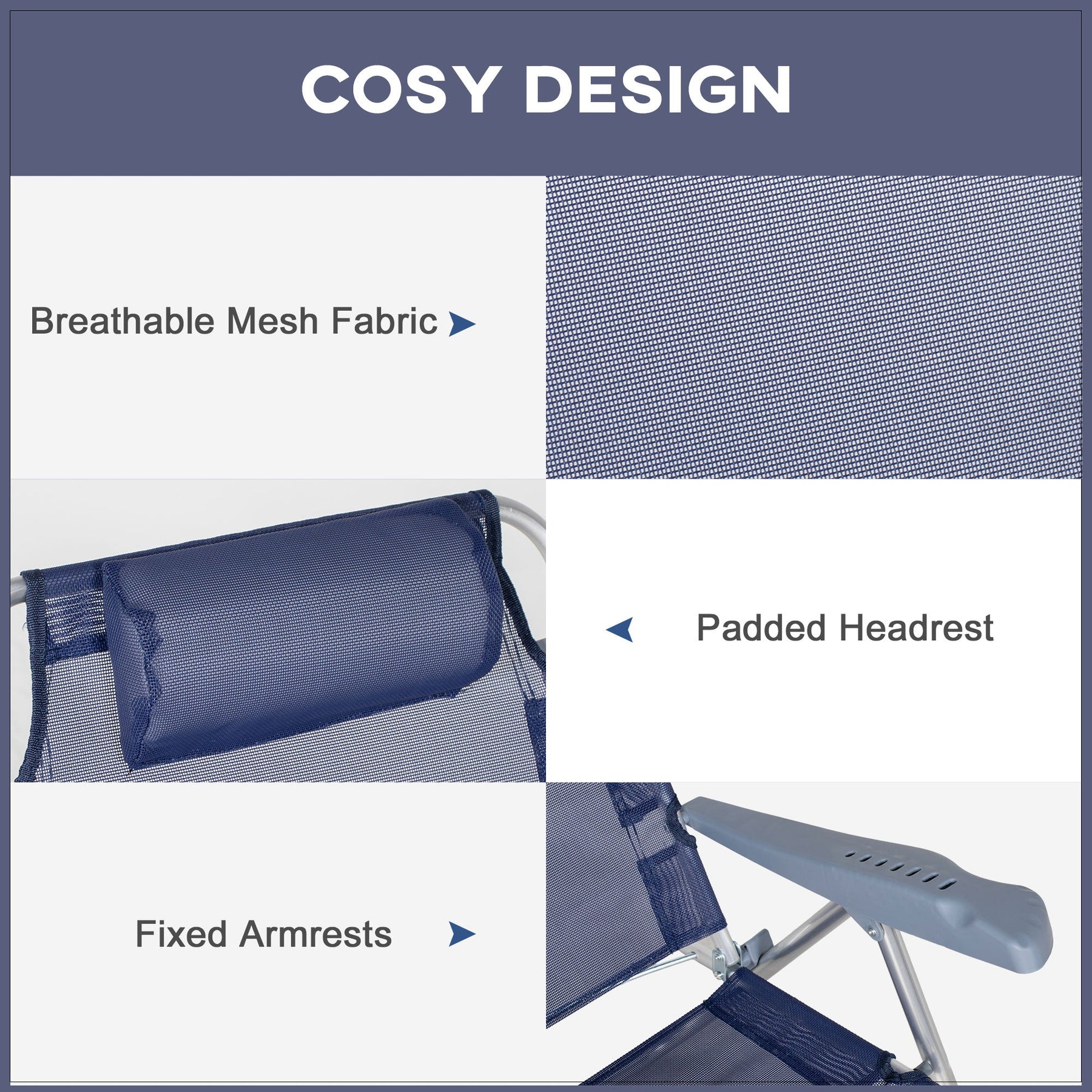 Cosy Design: Includes a padded headrest, fixed armrests, and breathable mesh fabric for comfort and coolness.