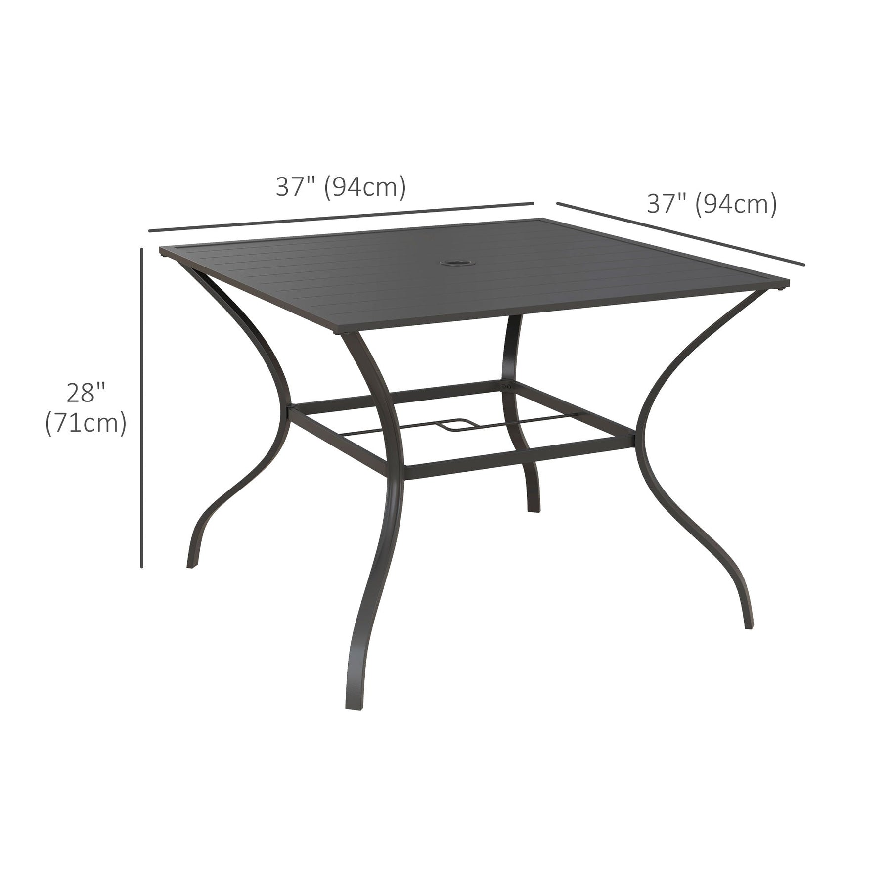 Outsunny Square Patio Dining Table with Umbrella Hole Outdoor Garden Table Slatted Metal Top for Poolside Backyard Dark Grey