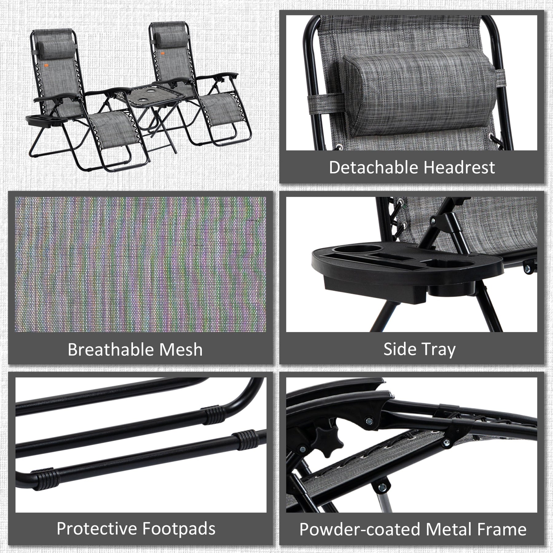 Complete Outdoor Set: Includes 2 zero gravity chairs, 2 clip-on side trays, and 1 folding table