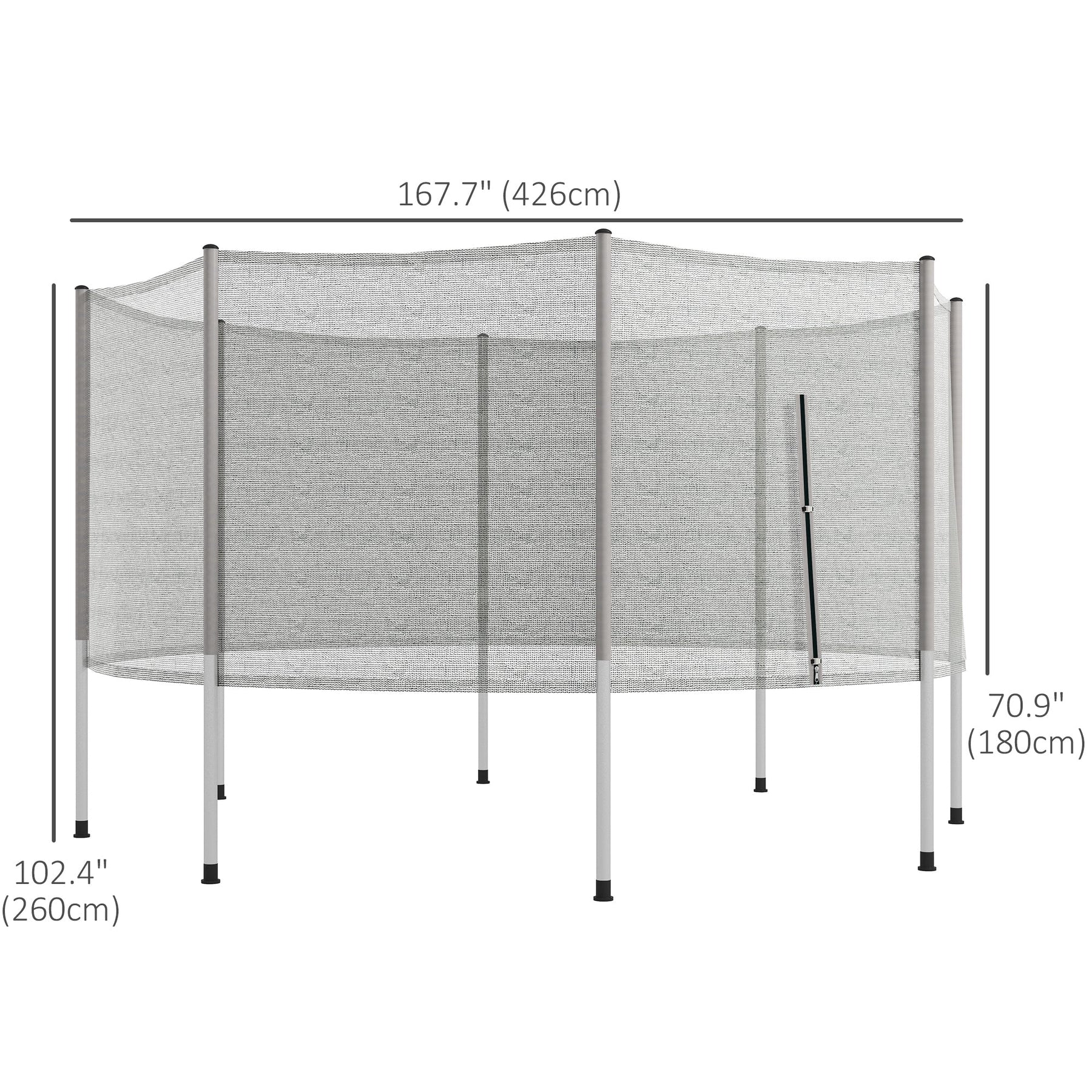 Dimensions: Compatible with 14FT trampolines. Includes net and 8 poles.