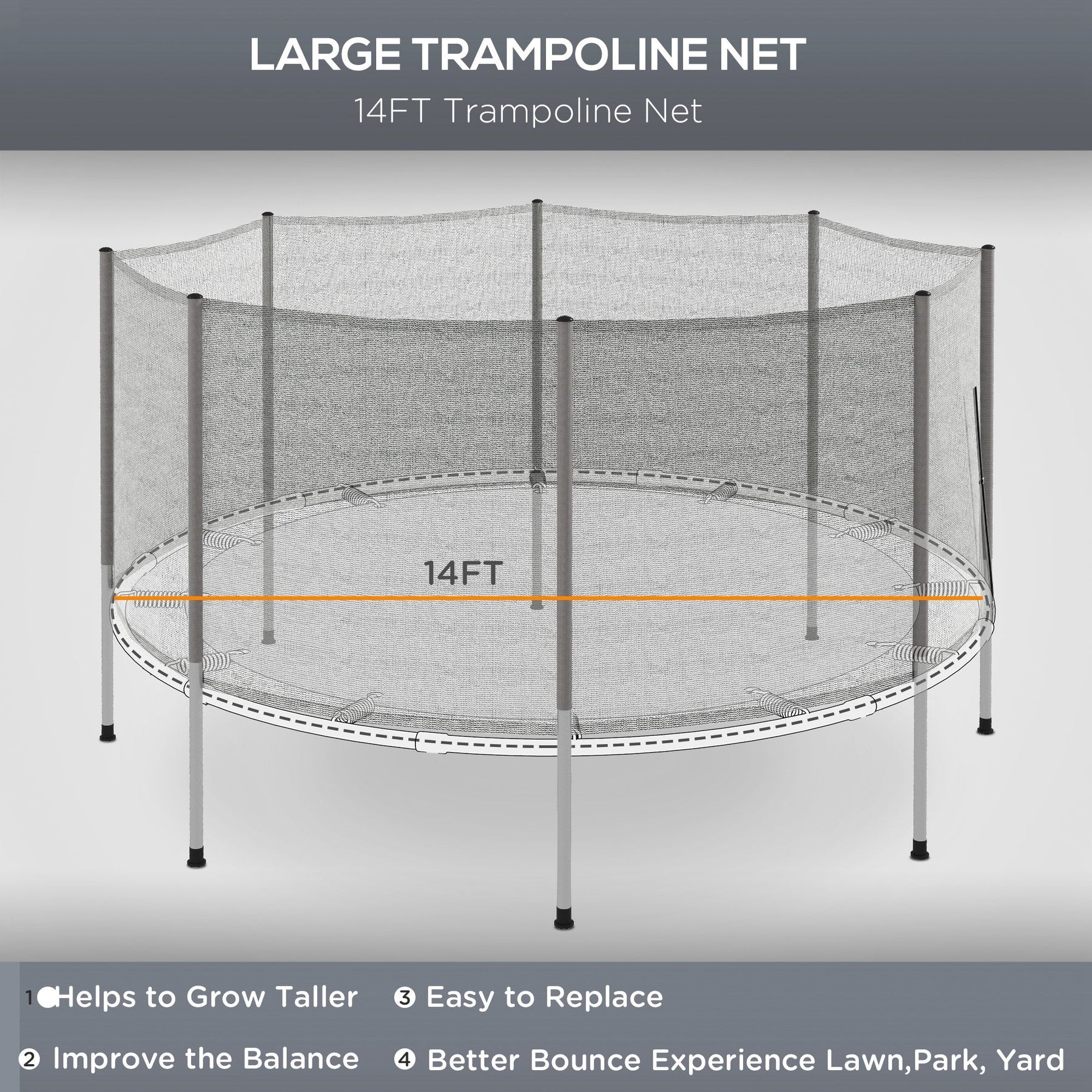 Protection Net Only: Compatible with 14FT trampolines. (Trampoline not included).