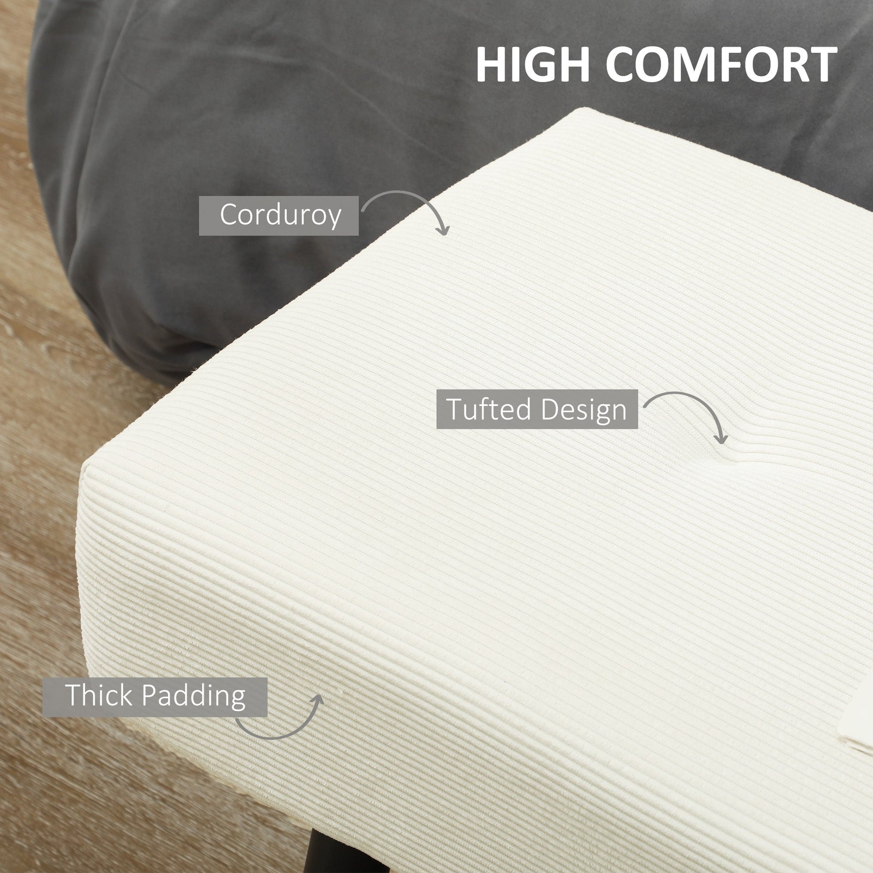 • Comfortable Seating: Enjoy the plush comfort of a 13 cm thick padded top, upholstered with soft corduroy fabric and filled with dense foam, offering a cozy seat for extended use.