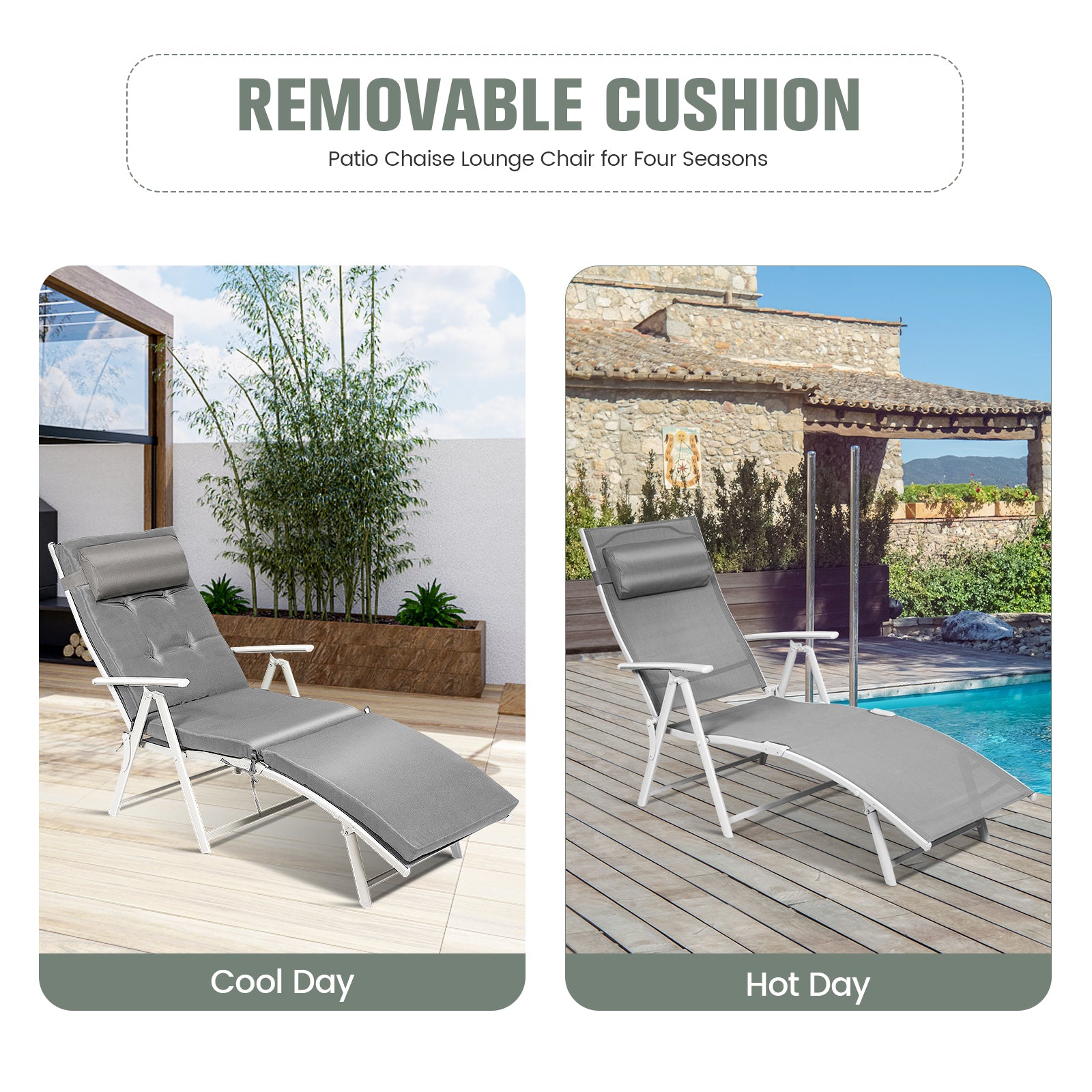 Adjustable Outdoor Lightweight Folding Chaise Lounge Chair with Pillow-Gray