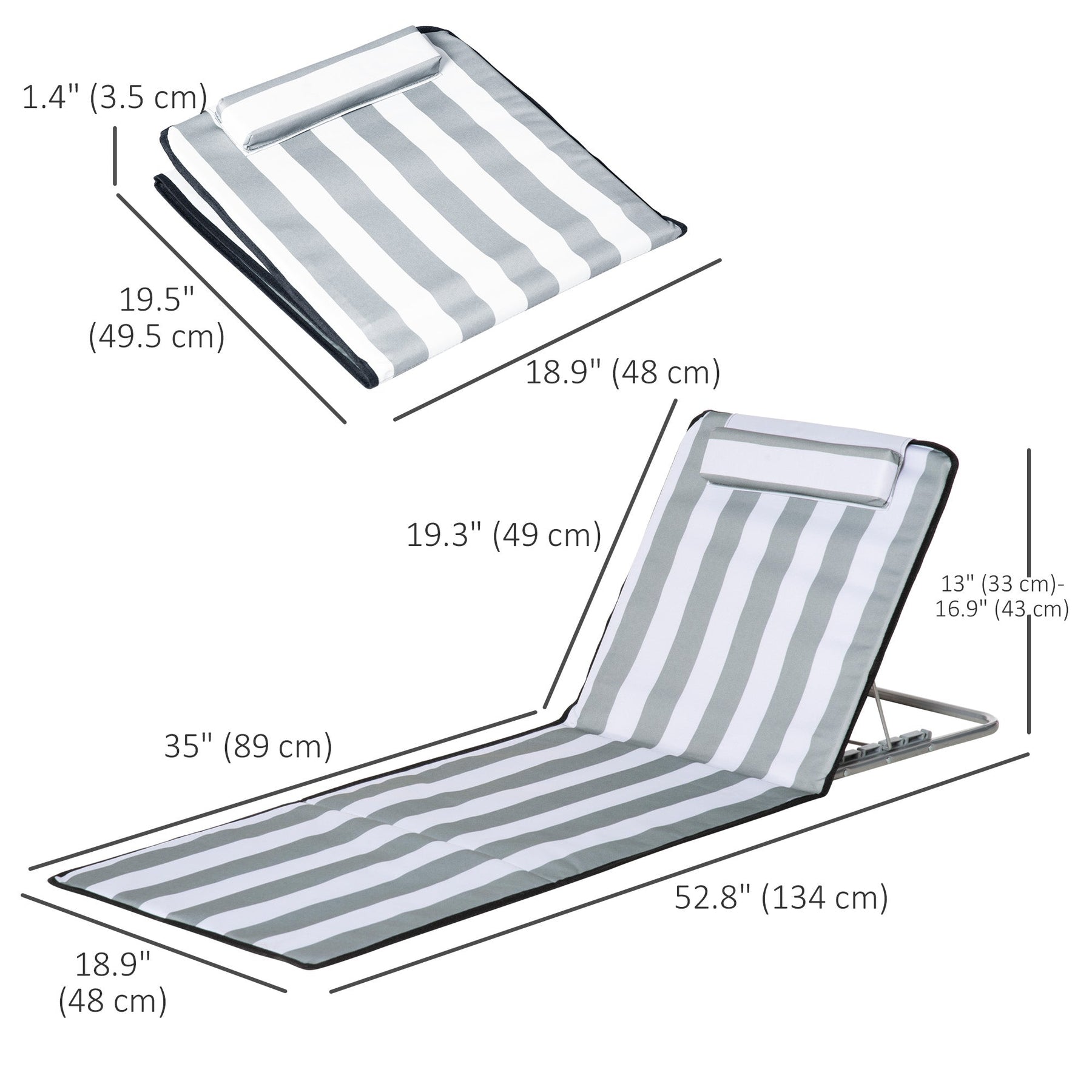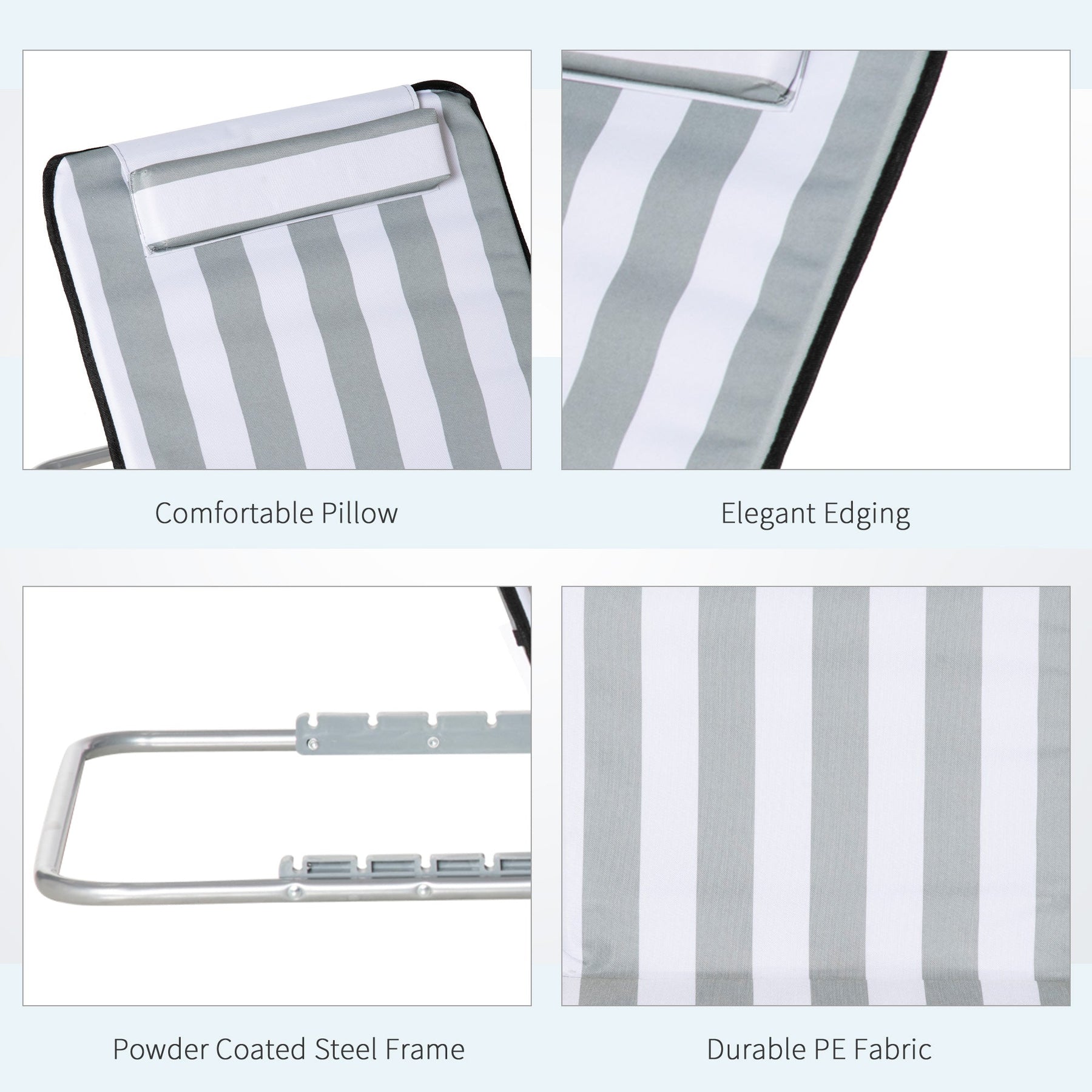 This 2-Piece Lounger Set is perfect for anyone looking to relax outdoors. It includes two beach mats that are ideal for sunbathing, lounging, or having a chat with friends. The beach chairs feature a 5-level adjustable reclining back, ensuring personalized comfort for any lounging position. For added convenience, a pillow is included to support your head while you unwind. Constructed with a durable powder-coated steel frame and PE fabric, these loungers are rust-resistant and reliable for various outdoor spaces, including gardens, patios, and yards. Designed to be lightweight and easy to carry, they can be folded to a compact size and come with a carrying bag, making it simple to take them anywhere—whether it's to the beach, park, or campsite.