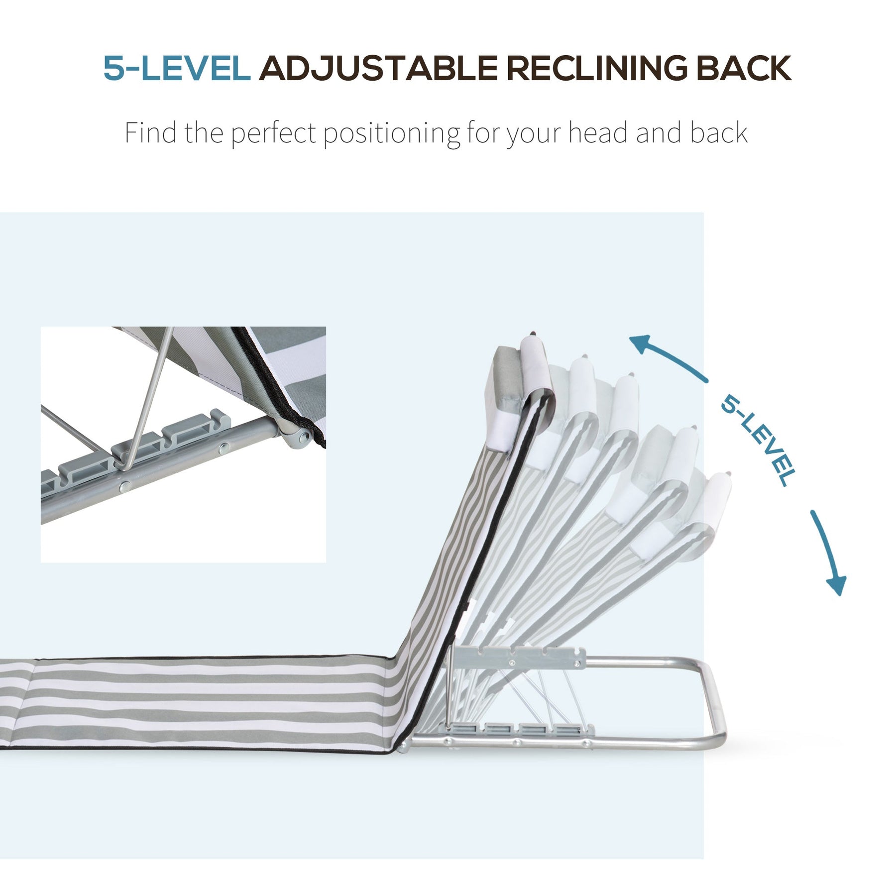 Reclining Comfort: 5-level adjustable reclining back with a pillow for added head support.