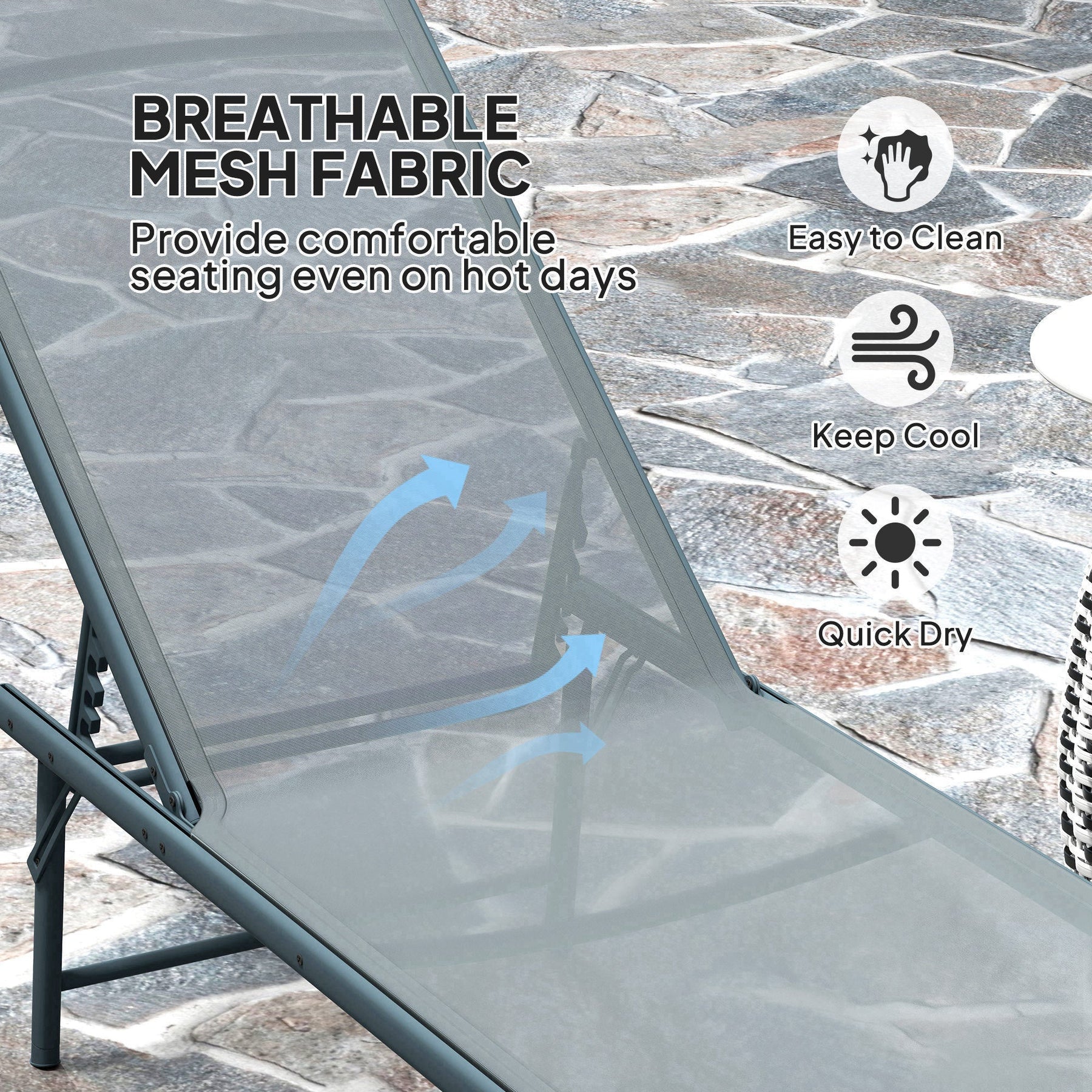 Relax in comfort and style with our 5-Level Adjustable Patio Lounger. Whether you're sunbathing, reading, or simply lounging outdoors, this chair offers five adjustable positions to provide optimal comfort. From sitting upright to fully reclining for a nap, you can easily find the perfect angle for your relaxation needs. Made with breathable mesh fabric, this lounge chair ensures you stay cool and dry even on hot days, making it ideal for poolside lounging or beach trips. The quick-drying fabric allows you to stay comfortable without worrying about lingering moisture. Designed with convenience in mind, the foldable legs enable easy storage, making it perfect for patios, balconies, or small spaces. Built with a steel frame and a protective powder coating, this lounger is rust-resistant and durable, offering long-lasting reliability for all your outdoor adventures.