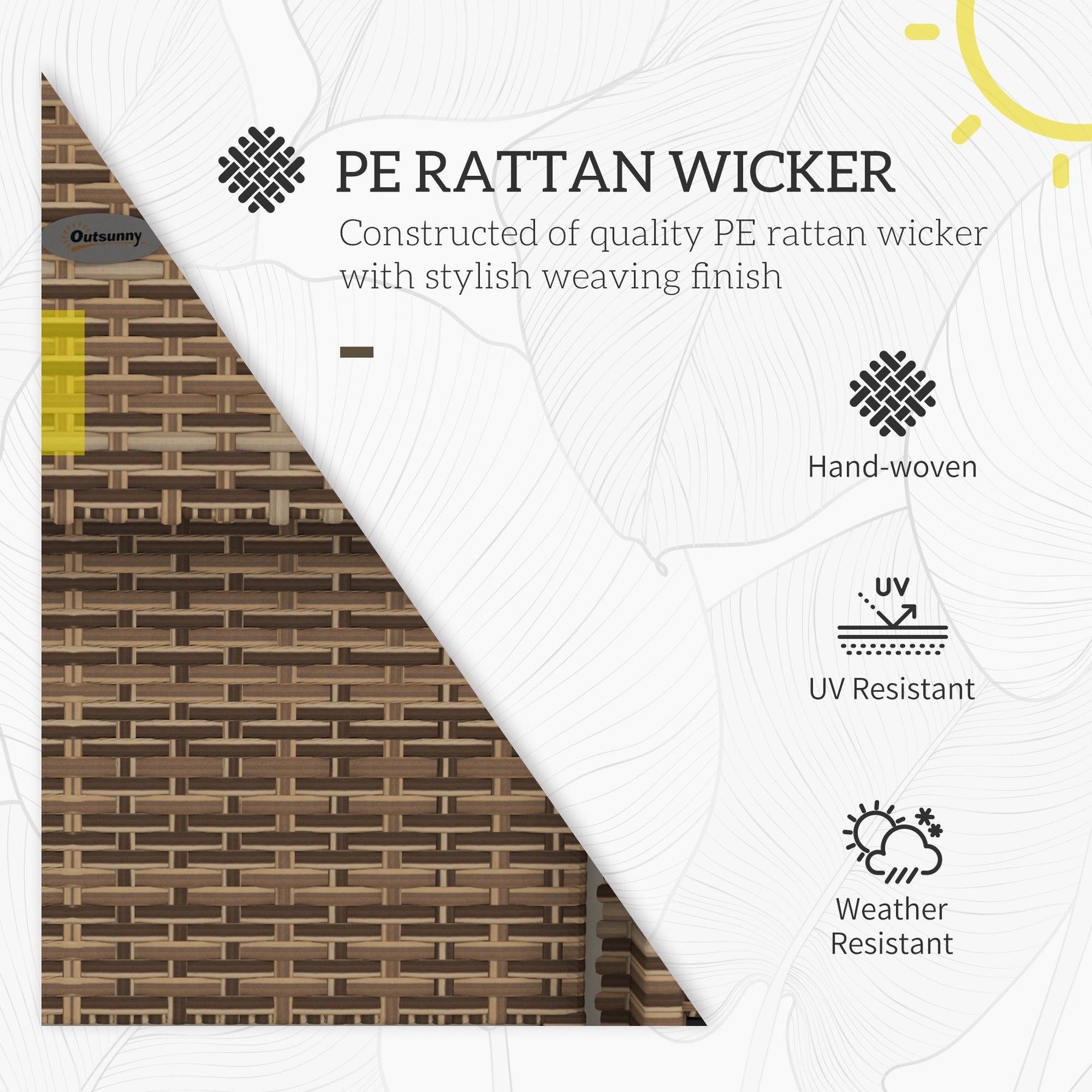 • Sturdy steel frame wrapped in handwoven PE rattan for outdoor durability.