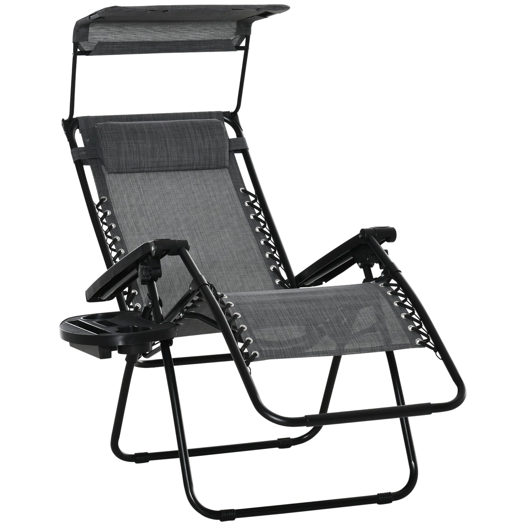 Outsunny Outdoor Zero Gravity Reclining Lounger Chair with Canopy Shade, Side Tray, Cupholder, Light Grey