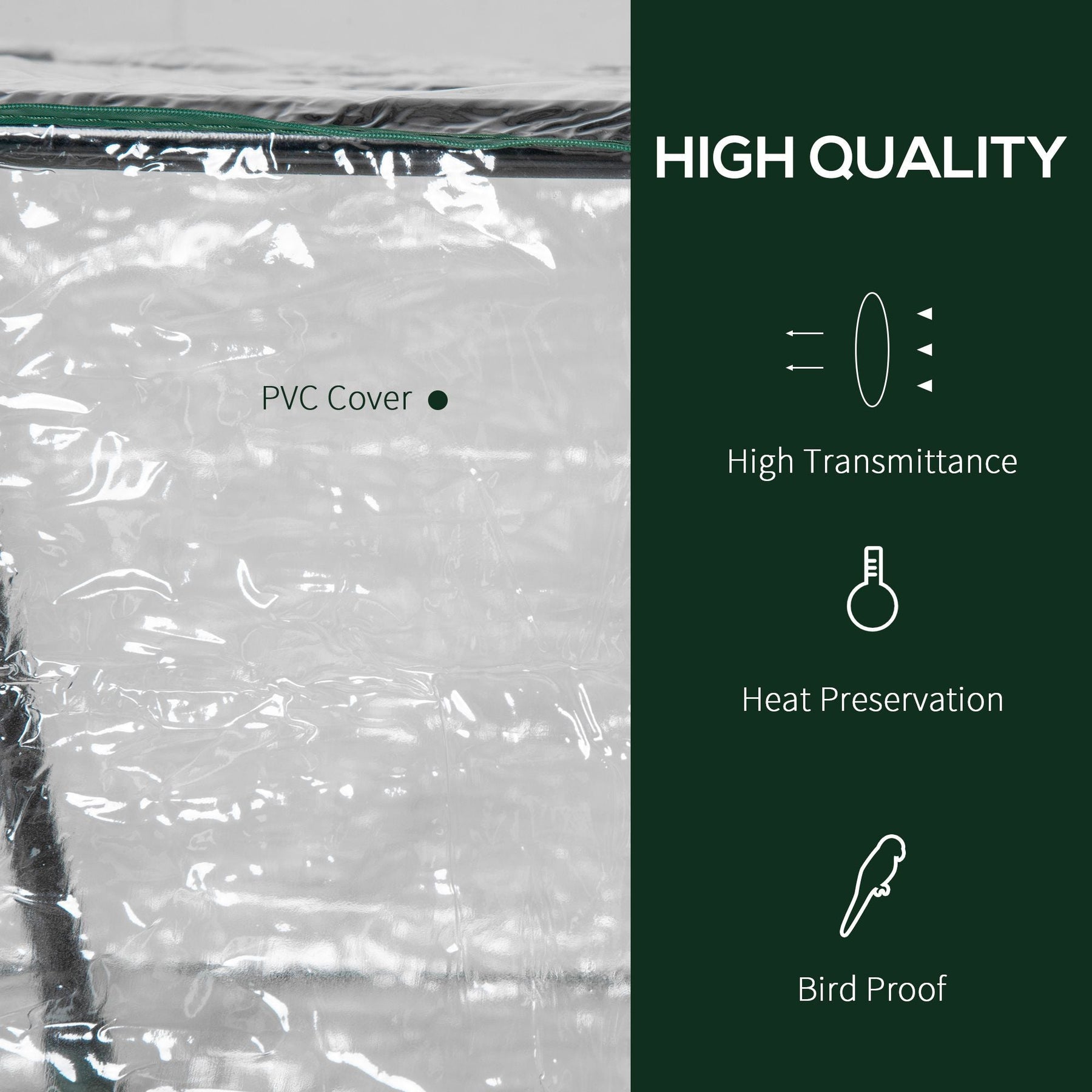 This mini greenhouse offers a durable and portable solution for year-round gardening, providing your plants with a protected environment. The strong powder-coated steel frame ensures stability, while the weatherized plastic cover is UV-protected and resistant to the elements, keeping your plants warm and safe from the cold and pests. The greenhouse is designed with two semicircular zipped windows at the front, allowing easy access and excellent ventilation, as you can roll them up for better airflow. Lightweight yet sturdy, this portable greenhouse can be placed in various outdoor spaces such as balconies, patios, or backyards. Whether you're growing vegetables, herbs, or flowers, this greenhouse is perfect for small spaces and can be assembled quickly and easily.
