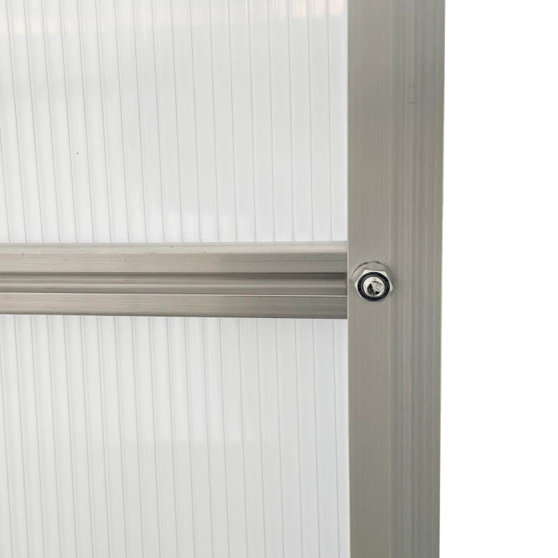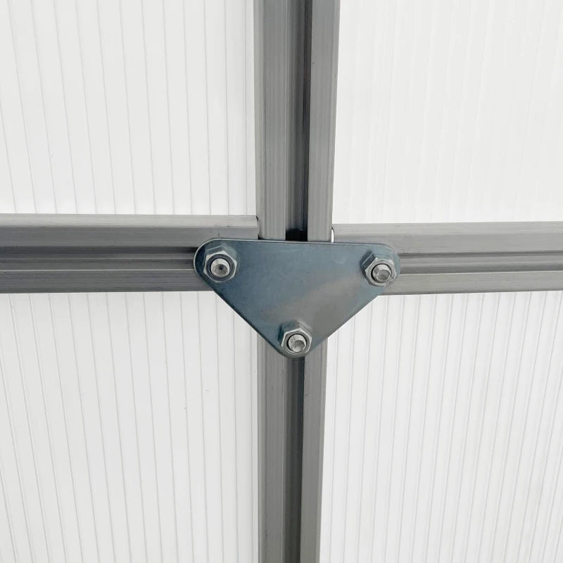 The transparent polycarbonate panels are specially treated to resist UV rays while still allowing plenty of sunlight to enter. Assembly is made easy with snap-in connections between panels.