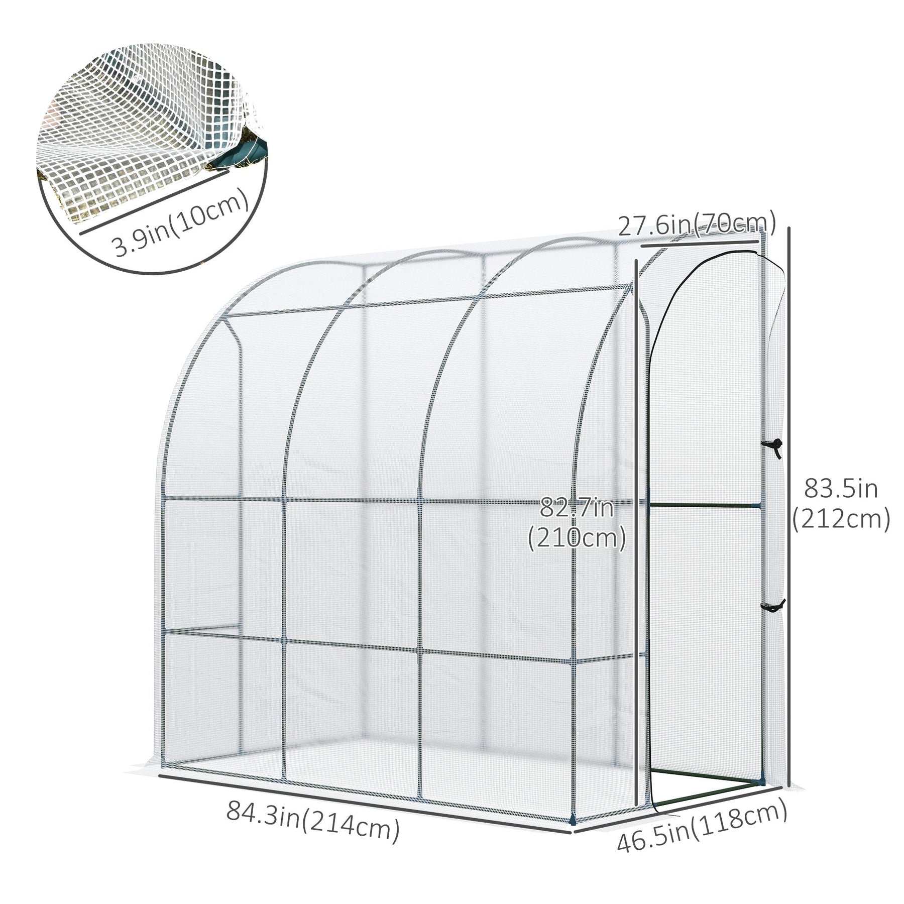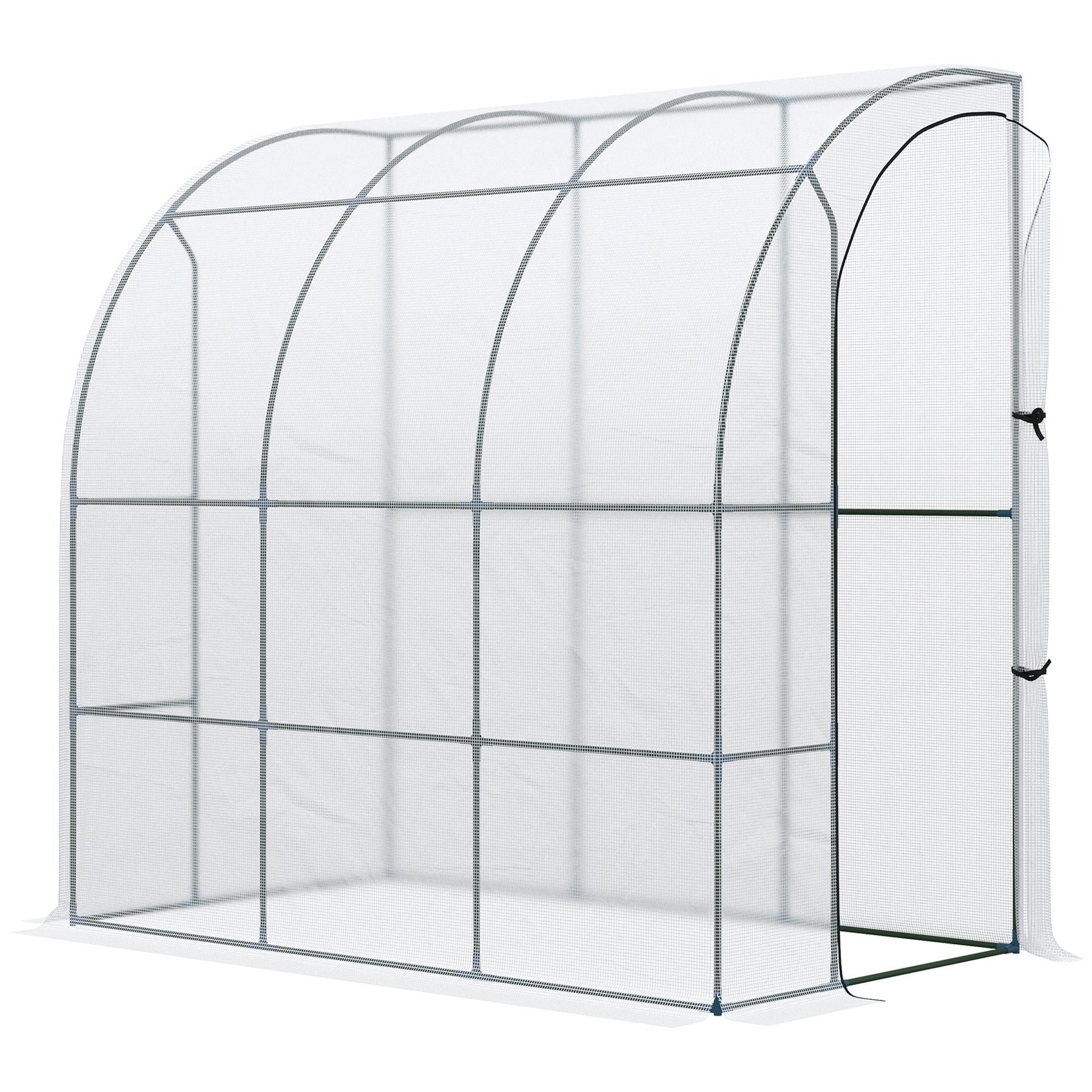 Extend your growing season with this walk-in wall greenhouse, a perfect solution for protecting your plants from cold weather, light winds, light rain, and even birds while allowing for easy plant management. Built with a durable galvanized steel frame, this greenhouse resists chipping and peeling, ensuring long-lasting use. The included four guy ropes, along with ground stakes, allow for secure anchoring, providing additional resistance against stronger winds. Designed with a compact wall structure, it includes three tiers of shelving with a total of six wire panels, offering ample space for nurturing plants. Whether placed in your home, garage, barn, or shed, it makes a convenient and efficient plant nursery. The greenhouse features a UV-resistant PE cover that helps maintain high humidity levels for tropical plants, while still letting nourishing sunlight through. The edges of the cover are designed to be buried deeply in the soil for added stability and protection from rainwater accumulation. Plus, the zippered doors allow for easy access to your plants and gardening tools, making maintenance simple and convenient.