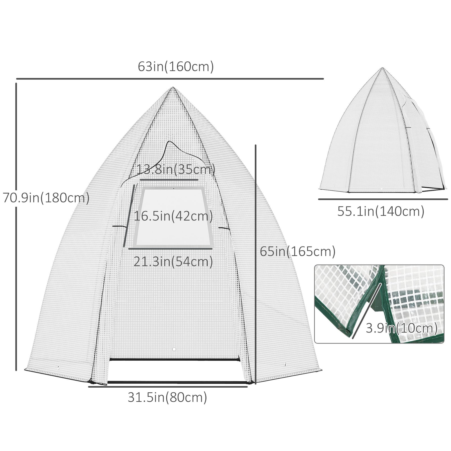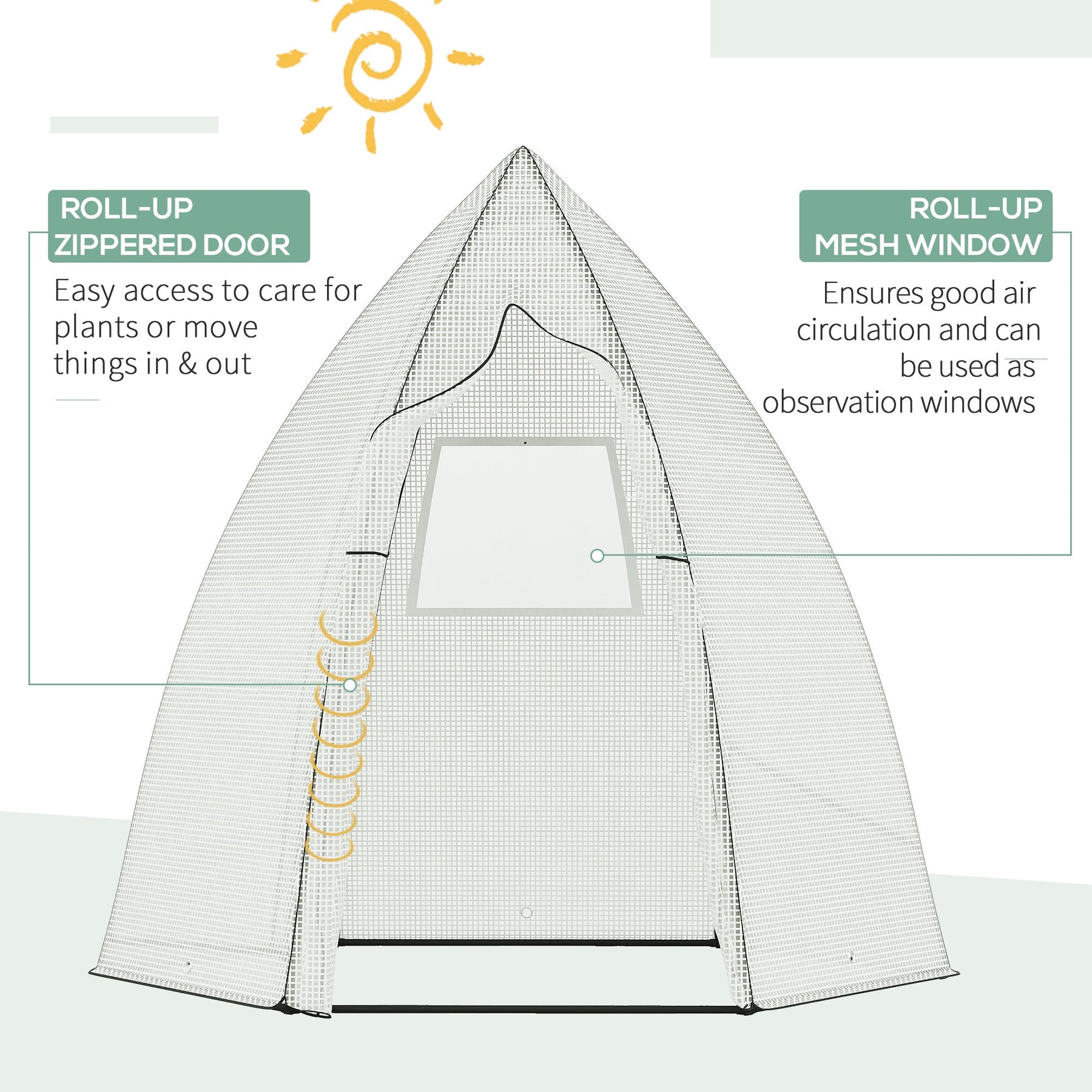 Introducing a unique spire-designed greenhouse, the perfect solution for extending your growing season while protecting your plants from the cold, wind, and birds. This stylish mini greenhouse is ideal for growing vegetables, flowers, and tropical plants in your garden, patio, or balcony. The fully enclosed UV-protection PE cover helps maintain high humidity levels, creating a nurturing environment for your plants. The extended 4" edges can be buried into the soil for added stability, while the roll-up door and mesh window offer easy access and excellent ventilation. Crafted with a sturdy steel frame and equipped with wind ropes and ground nails, this greenhouse is built for durability and stability.