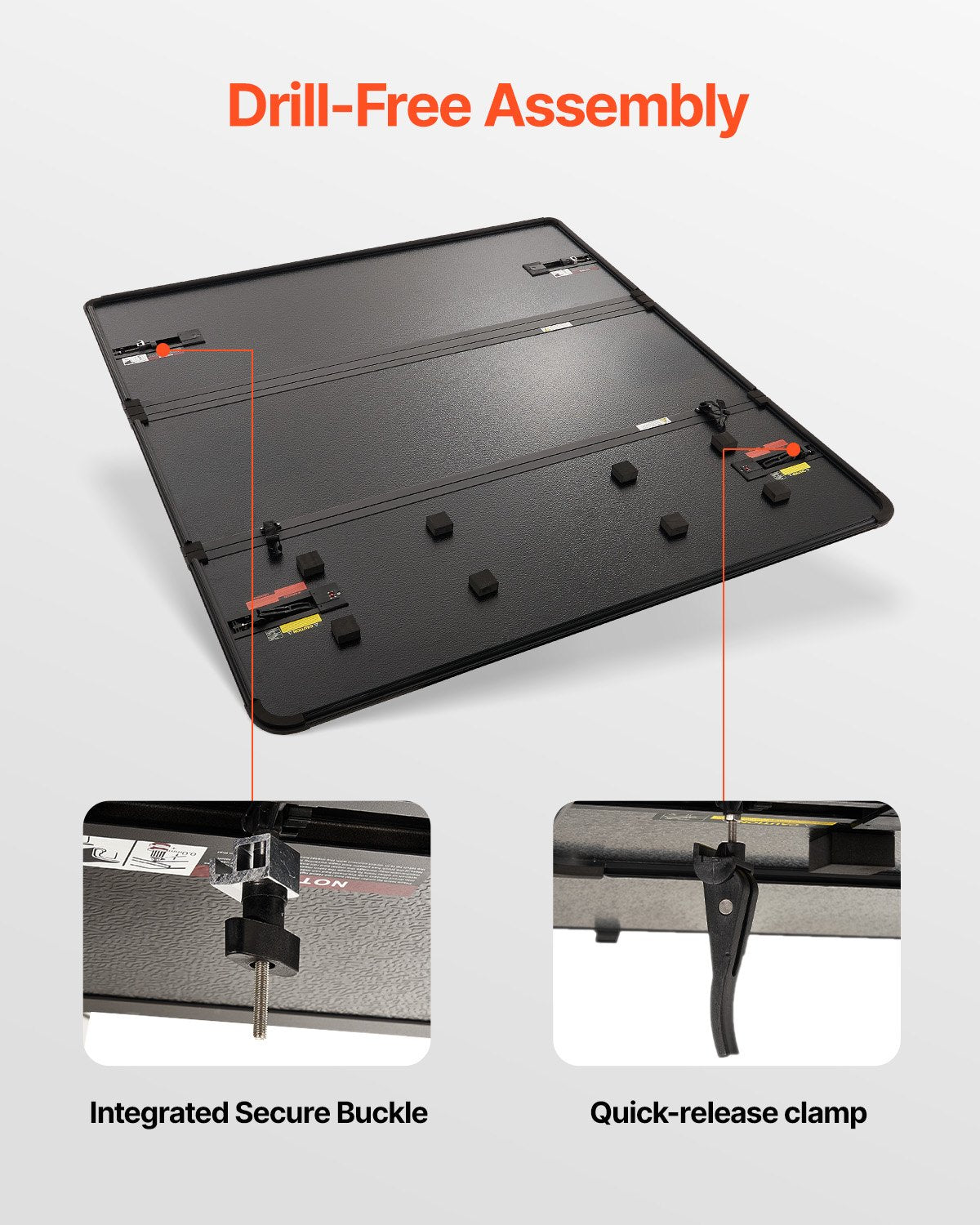 • Easy Folding and Unfolding: Quick installation with a tri-fold design for easy access to the truck bed.