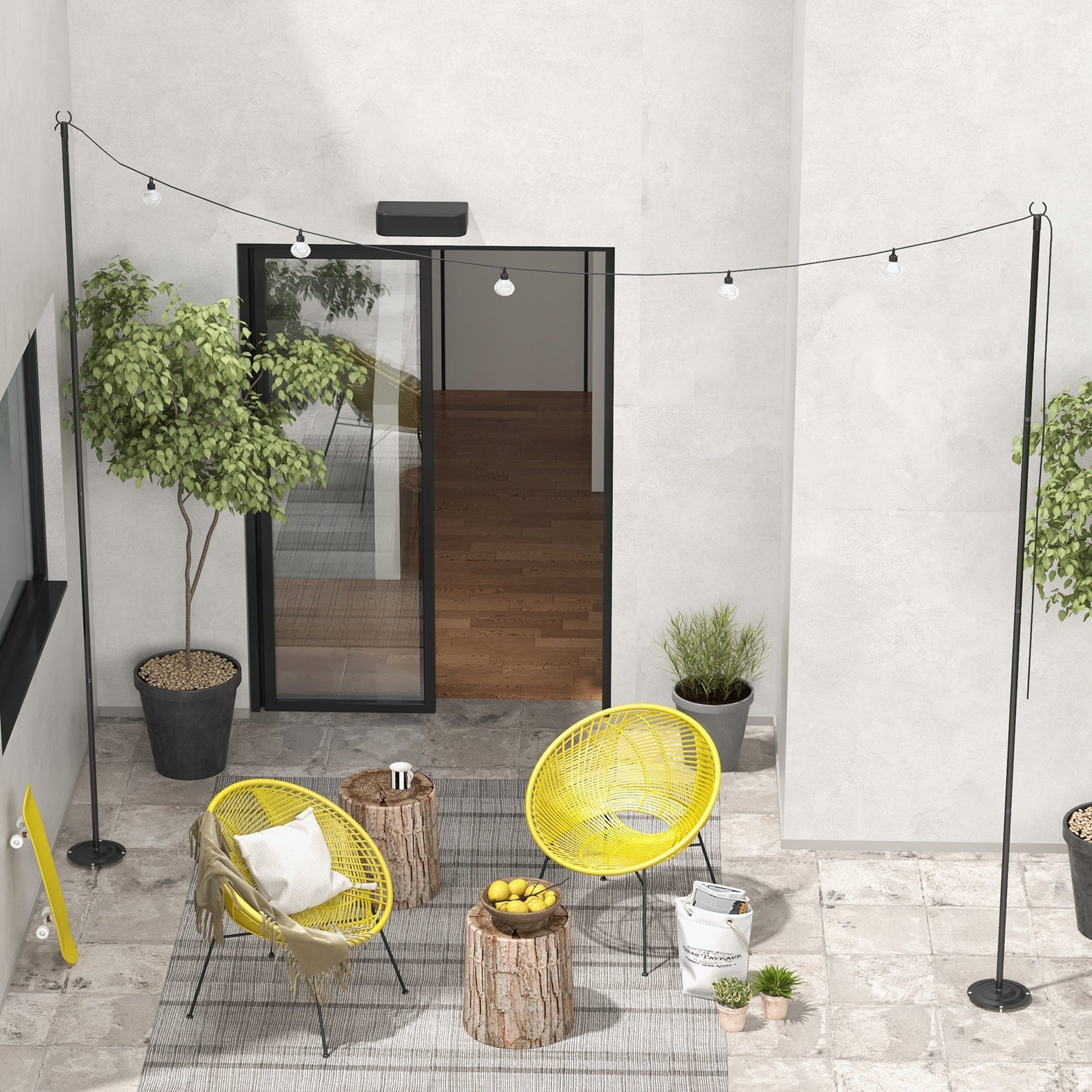 Transform your outdoor space with these versatile patio light poles, perfect for any occasion. Whether you're hosting a garden party, decorating for Christmas, or setting the mood for a cozy year-round patio ambiance, these light poles are ideal for hanging fairy lights, lanterns, banners, and more. Designed with three easy installation methods, you can quickly set them up by inserting into soft ground with 2-prong stakes, securing them to hard ground with hardware kits, or attaching them to deck rails or fences using brackets. The adjustable height feature allows you to customize the pole’s height to suit your space, providing flexibility for any event or setup. Built with powder-coated steel, these poles are weather-resistant, standing up to rain, mist, and high humidity, ensuring long-lasting performance.