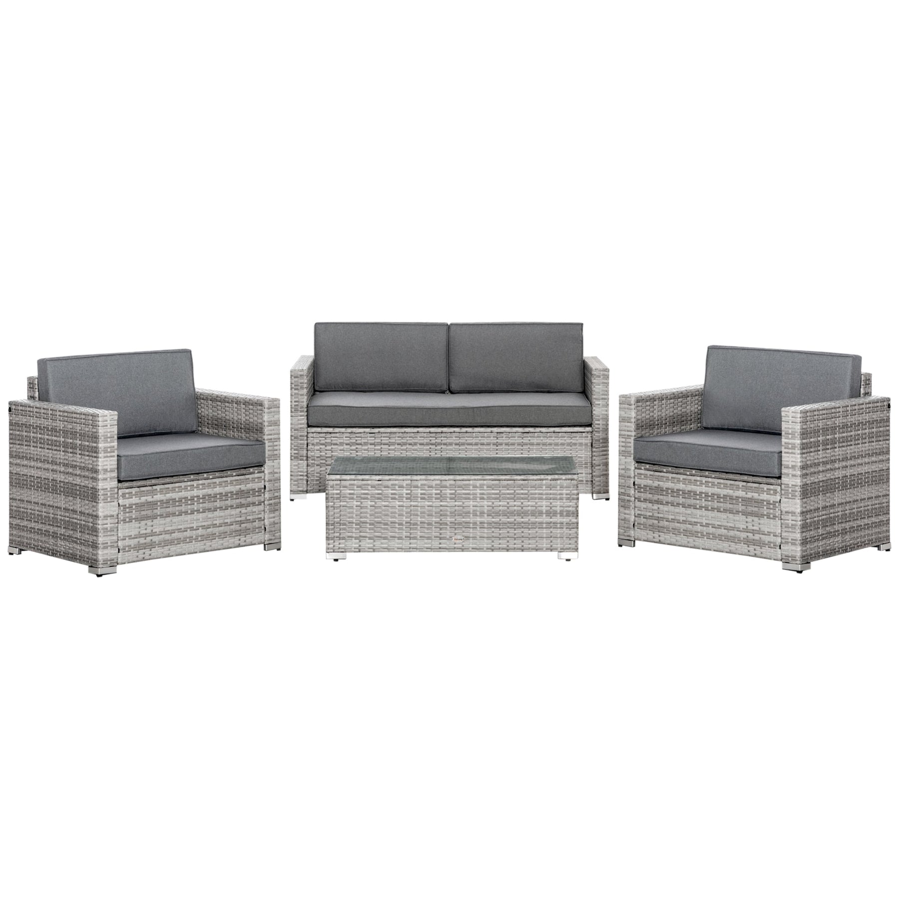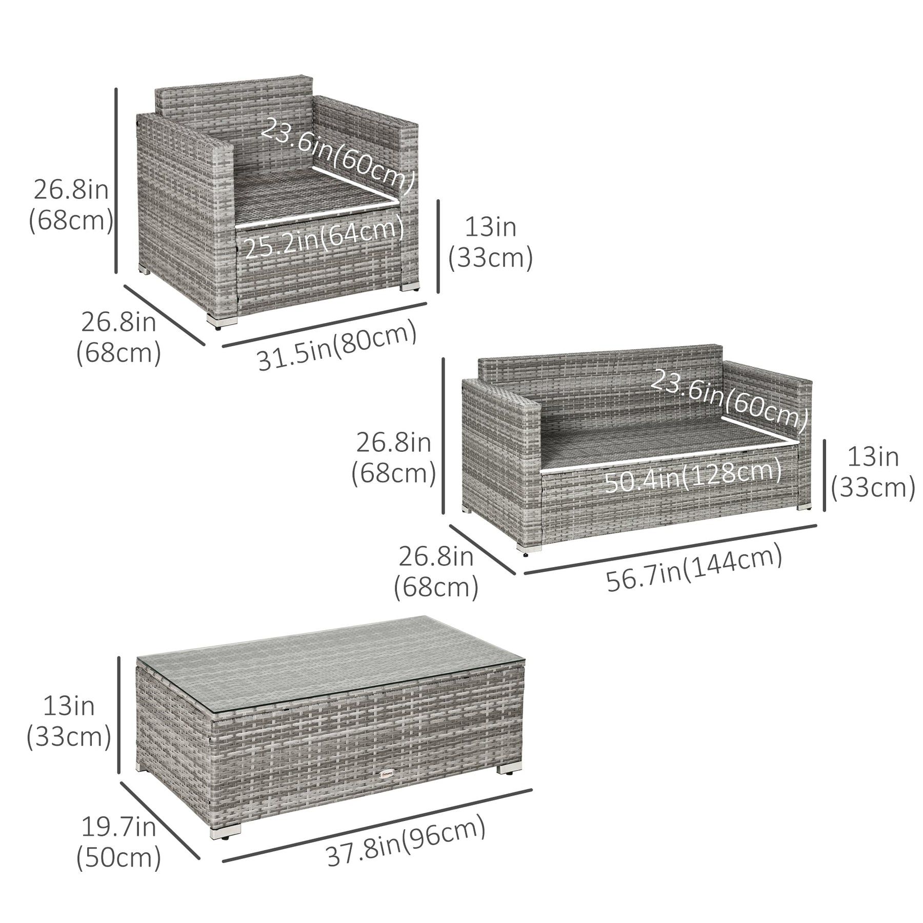 Outsunny Deluxe 4PC Outdoor Wicker Sofa Set PE Rattan Patio Furniture Extra Wide Seat Conversation Tempered Glass