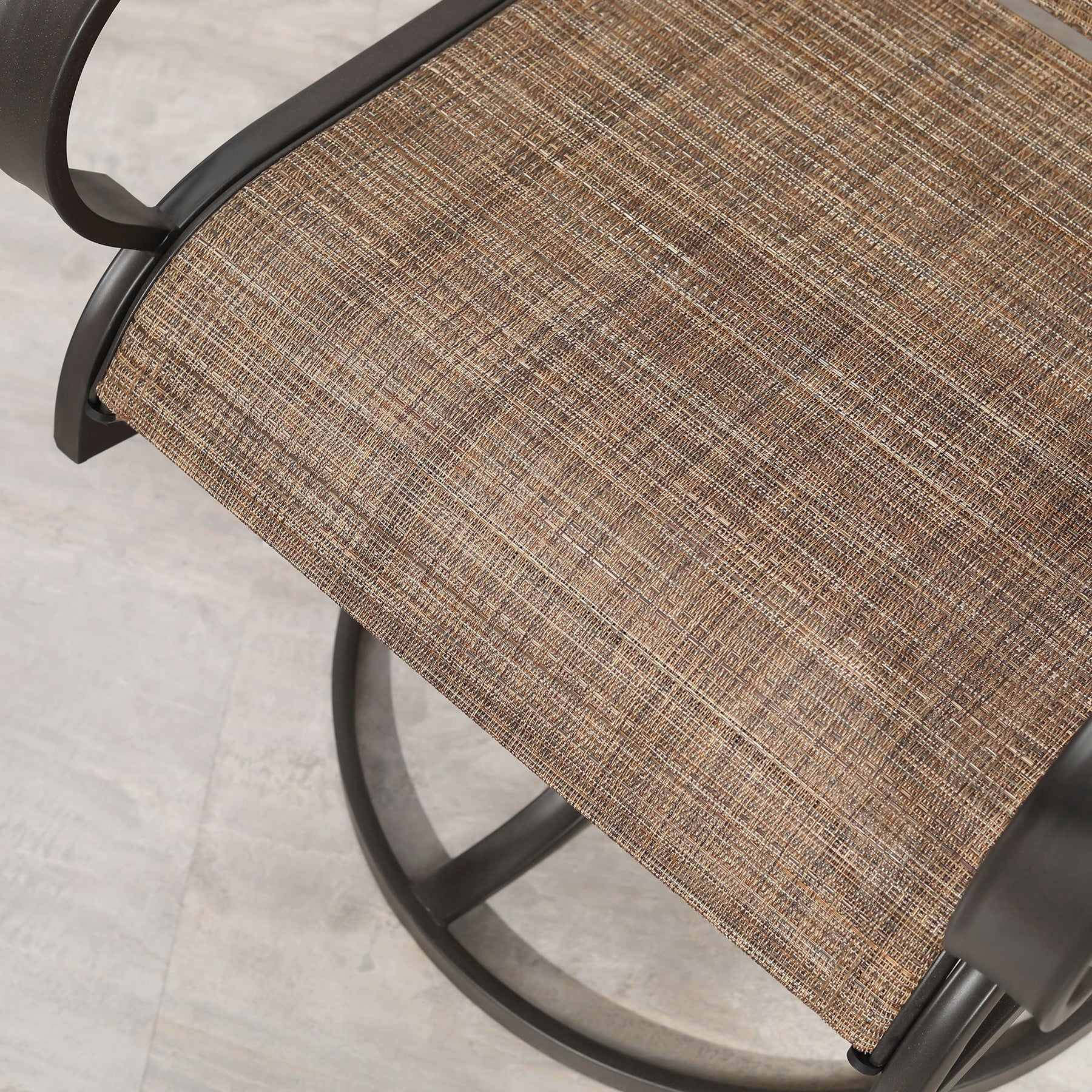 This 5-piece patio furniture set is the perfect addition to your outdoor space, offering both functionality and comfort. It includes one square table and four matching mesh chairs, ideal for enjoying tea, playing games, entertaining guests, or simply relaxing in the fresh air. The table features a convenient umbrella holder with a 40mm hole in the center, which securely accommodates a patio umbrella (Φ38mm) to protect you from the sun’s glare. The set’s 360° swivel rocker chairs provide both a rocking and swiveling experience, offering great relaxation and fun while taking a break. Built with a powder-coated steel frame for superior strength and durability, the swivel chairs feature a breathable mesh seat and backrest that provide a cool and comfortable sitting experience. With a weight capacity of 264 lbs per chair and 99 lbs for the table, this set is built to last. Assembly is required to set up your patio furniture and enjoy a new outdoor gathering space.