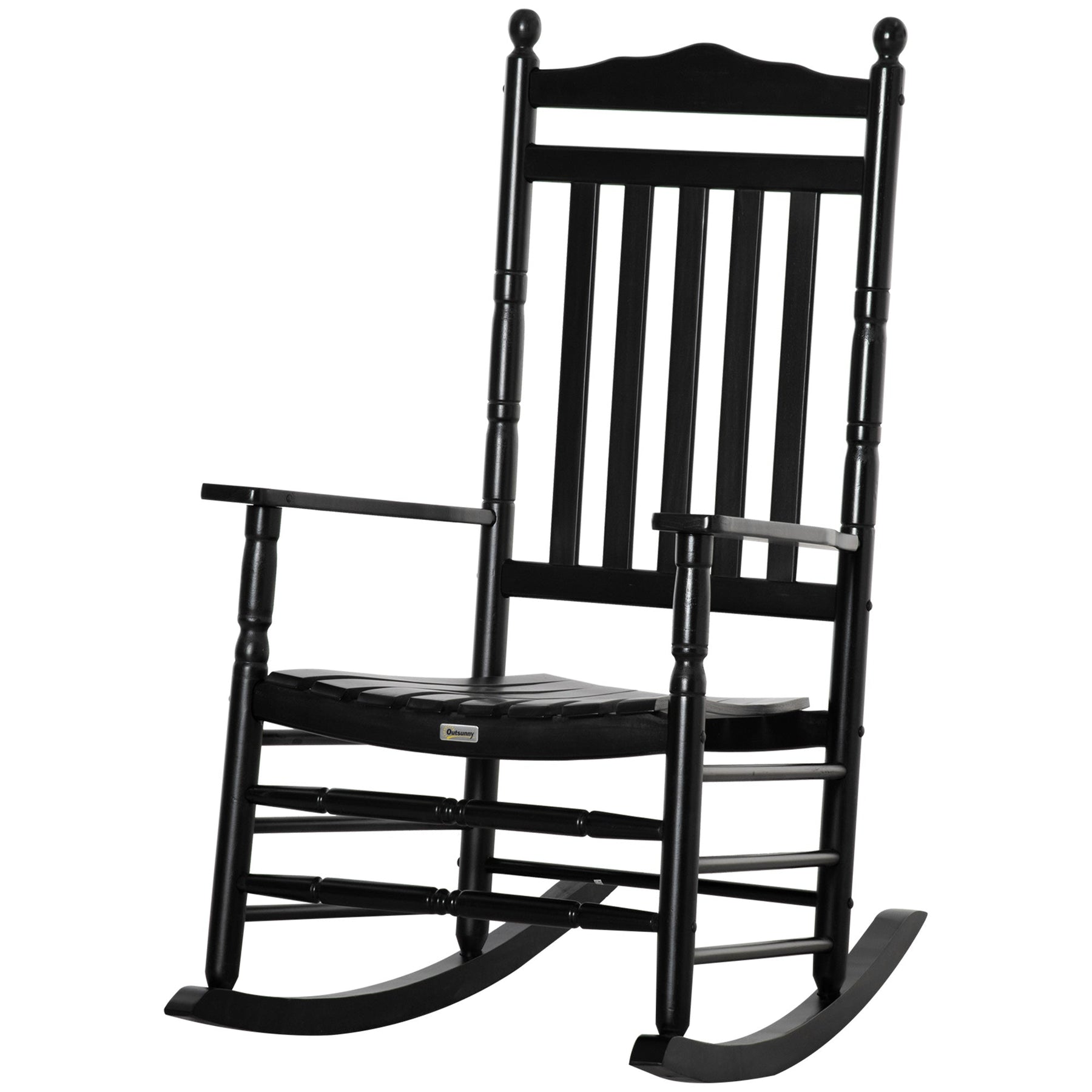 Add a touch of timeless charm to your outdoor space with this classic wooden rocking chair. Crafted from durable poplar wood, this rocker combines traditional design with ergonomic comfort, making it the perfect seat for your front porch, patio, or garden. The high backrest, smooth armrests, and gently curved rockers provide a soothing motion that invites you to unwind after a long day. Treated with UV-protective paint, it resists fading and keeps its vintage look, even under the sun.