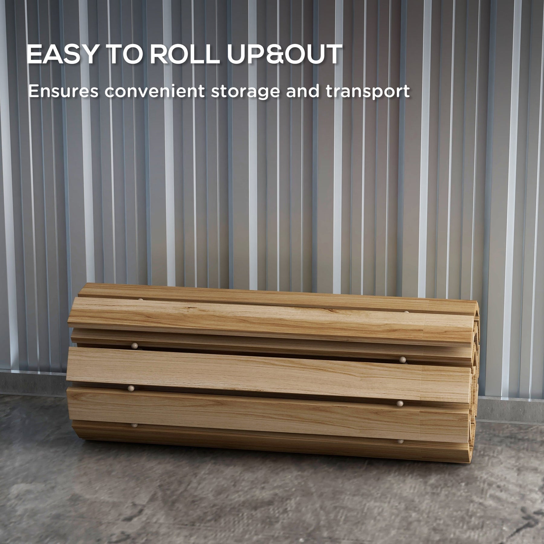 This 47.2" x 18.5" pathway mat is the perfect solution for creating a clean, dry walking surface on sand, gravel, and muddy terrains. Whether it’s for your garden, yard, or an outdoor shower, this mat ensures your feet stay clean and dry, even on rainy days. Its practical roll-up design makes installation and storage easy; simply unroll it to create your desired path or roll it up when not in use. The pathway features wooden slats that are firmly connected with metal wire and wood spacers, offering a secure and durable structure. The fir wood frame is treated with protective paint to withstand outdoor elements like rain, water, and droplets, ensuring it remains stable without deforming, chipping, or cracking. The mat is also easy to clean; just spray it down with a hose or high-pressure cleaner to remove dirt, dust, or debris, keeping it looking like new.