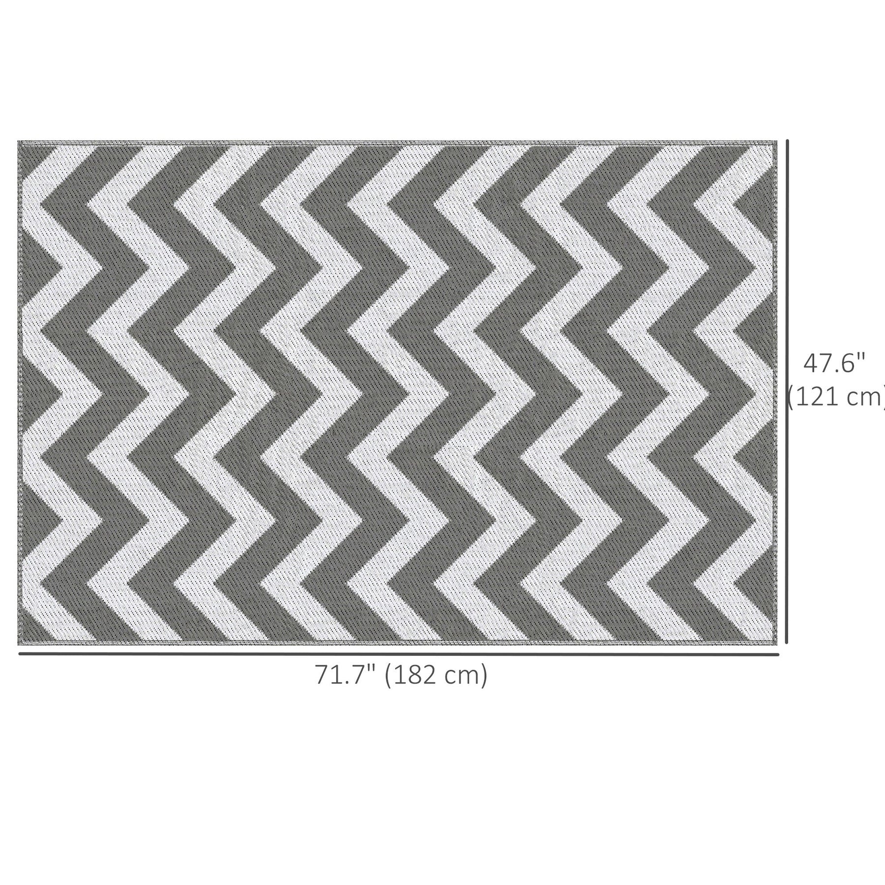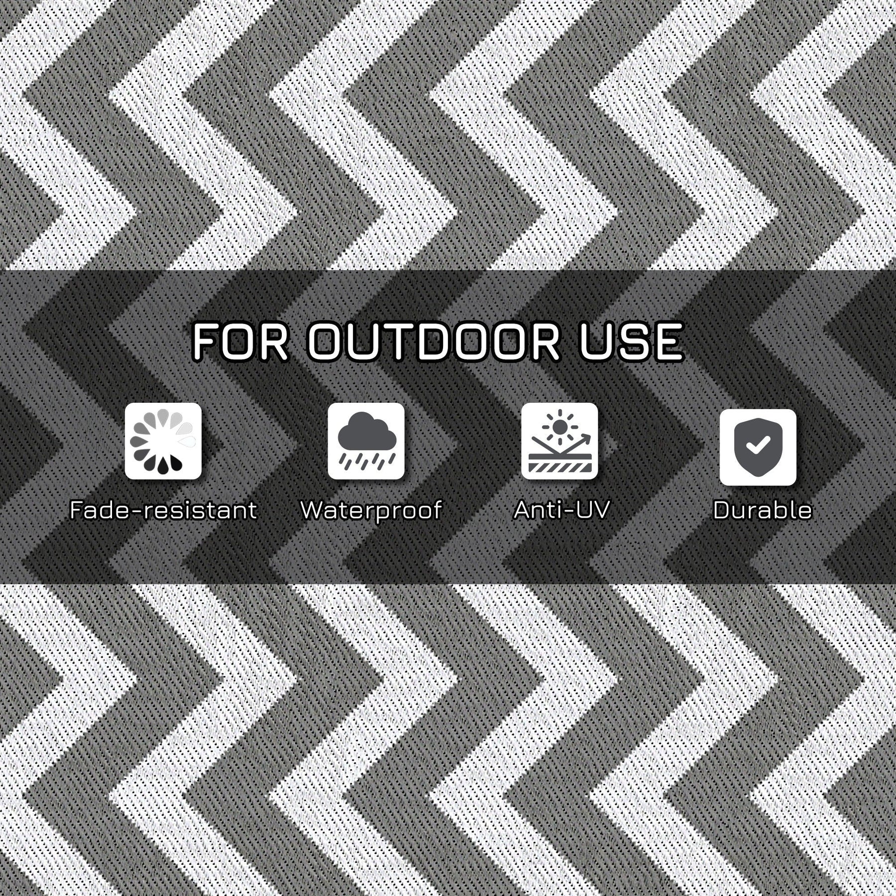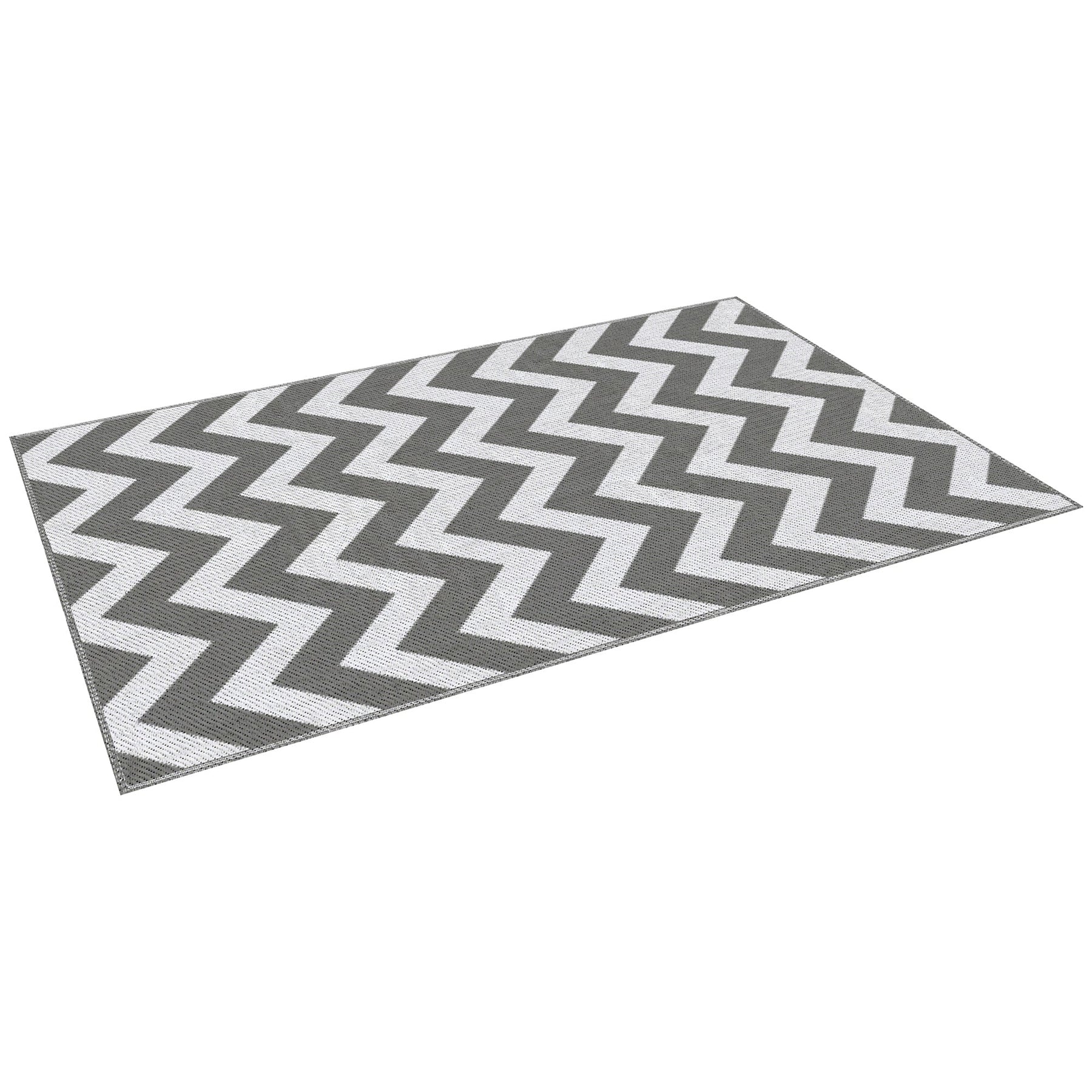 Add functional flair to your outdoor space with this reversible patio rug. Featuring two color schemes on either side, it's easy to flip for a fresh look. Made from 100% polypropylene with sun protection treatment, this rug resists fading and is perfect for use in gardens, on balconies, or during camping and RV trips. Lightweight and foldable, it's easy to pack and take with you. When it gets dirty, just rinse or wipe clean for easy upkeep.