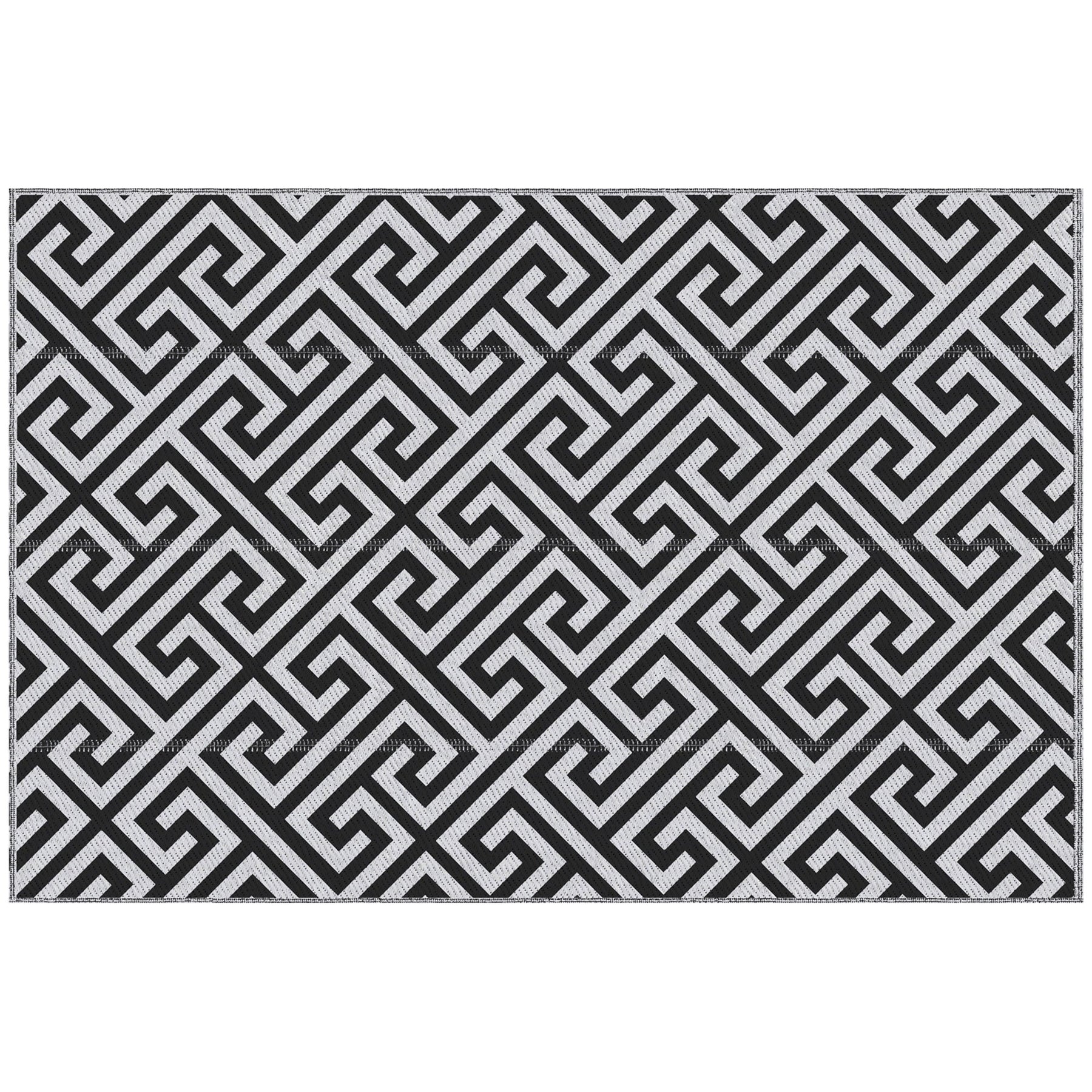 Outsunny Reversible Outdoor RV Rug, Patio Floor Mat, 5' x 8' Plastic Straw Rug for Backyard, Deck, Beach, Camping, Black & White