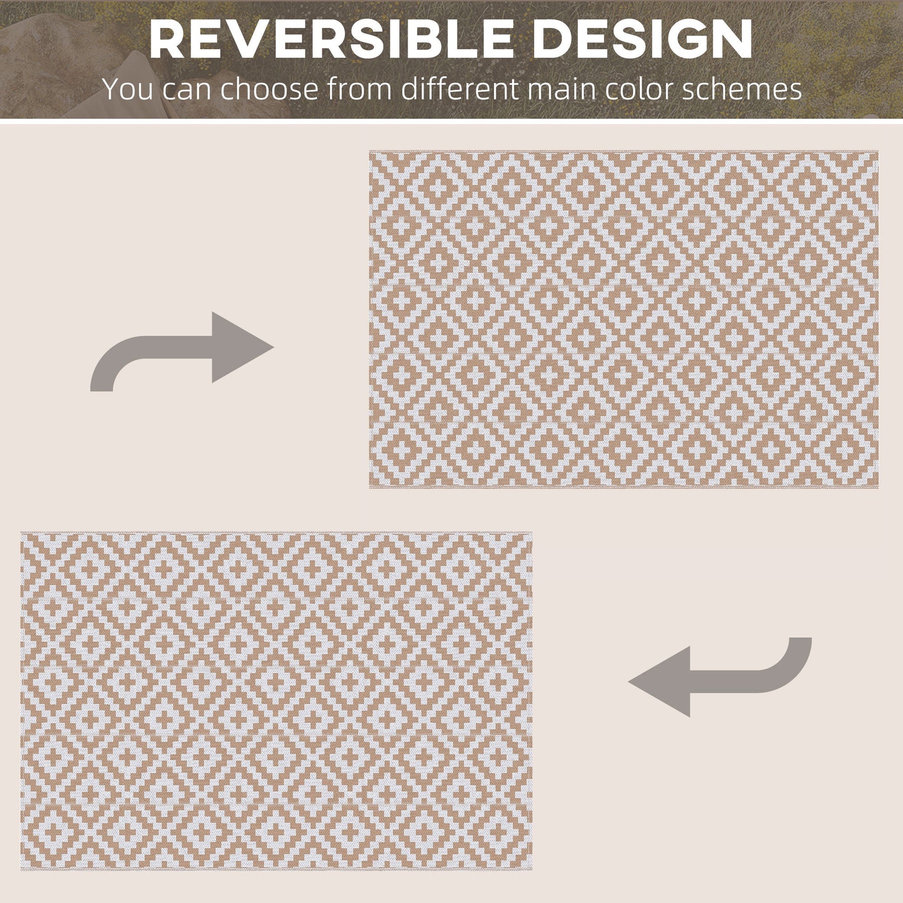 Bring comfort and colour to your outdoor adventures with this reversible camping mat. Designed with double-sided colour schemes, it offers visual variety and versatility in any space. Crafted from 100% polypropylene with reinforced edging, it’s built to resist fraying and sun damage. Lightweight and foldable, this mat is ideal for use in gardens, parks, beaches, and picnics. When it gets dirty, simply rinse, sweep, or wipe it clean and let it air dry.